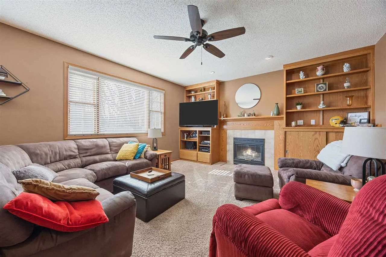 This well-designed home offers the layout buyers are looking for, with four bedrooms on the same level, including a spacious primary suite featuring a private bath with tiled walk-in shower and a walk-in closet. The main level is both functional and inviting, offering a family room with a fireplace, formal living and dining rooms, and a kitchen with a dining area—perfect for everyday living and entertaining. Hardwood floors run throughout the main level, complemented by stainless steel appliances in the kitchen. Convenience continues with first-floor laundry located just off the oversized two-car garage. Step outside from the kitchen to a large deck, ideal for relaxing or hosting guests. The lower level adds even more flexibility with a rec room, an office or additional bedroom, and a full bath, making it a great space for guests, work-from-home needs, or hobbies.