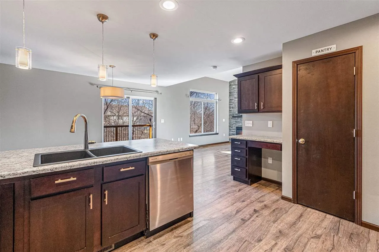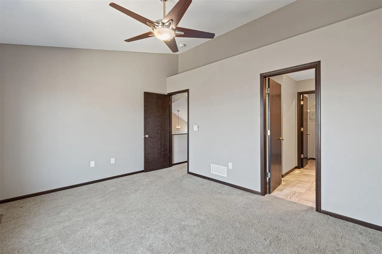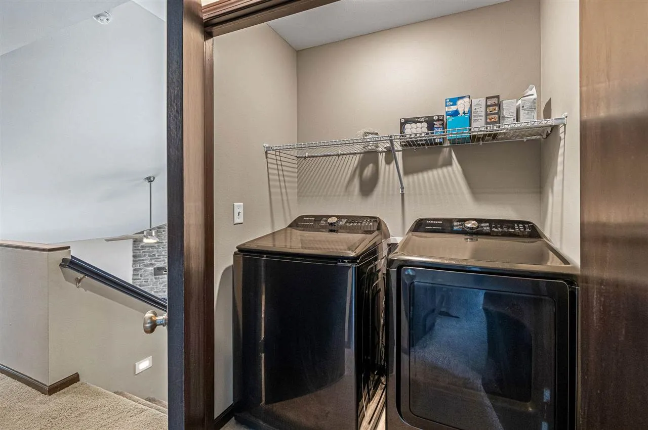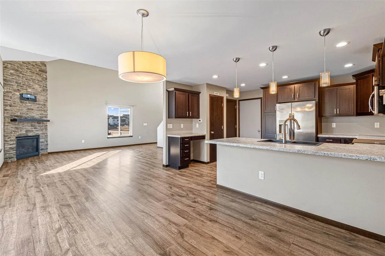 Step into a stylish two-story zero-lot home in Tiffin’s Rolling Hills neighborhood. Built in 2019, this 2,222-sq-ft home welcomes you with soaring ceilings in the great room, a floor-to-ceiling stone fireplace and luxury vinyl plank flooring. The open kitchen features high-definition laminate counters, a flush breakfast bar, desk area and updated stainless-steel appliances. The dining area opens to a deck overlooking a large and fenced in yard. Upstairs you’ll find three generous bedrooms, including the primary suite, plus a convenient laundry. Two full baths feature ceramic tile and quality fixtures and there’s a main-level powder room. The walkout lower level is professionally finished with extra living space, a fourth bedroom and additional full bath. An attached two-car garage, central air and natural-gas forced air with fireplace insert ensure comfort year-round. Set on a deep lot with mature trees as the back drop, this home offers low-maintenance living near parks, schools and trails. Tiffin is Iowa’s fastest-growing city, strategically located at the I-80/I-380 interchange with quick access to the University of Iowa and Eastern Iowa Airport