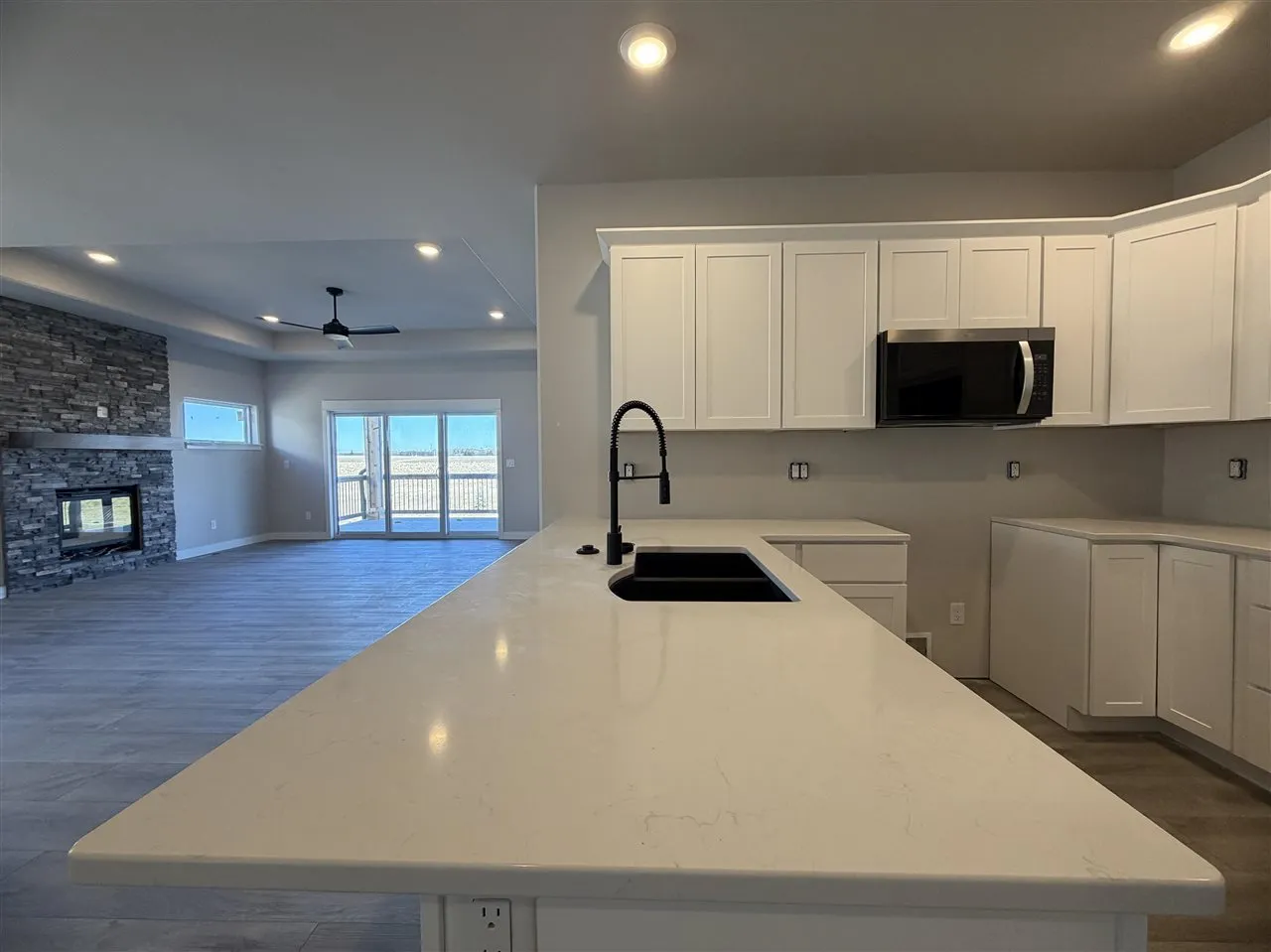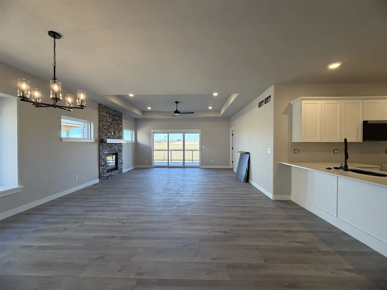 Brand new zero lot with 2 bedrooms on the main floor and 2 bedrooms in the lower level. Great room features a trey ceiling and gas fireplace with stone. Covered deck with steps. White kitchen cabinets, breakfast bar, and stainless appliances with the microwave VENTED TO THE EXTERIOR. Hard surface countertops in the kitchen and bathrooms. White trim throughout. Primary bedroom has access to the laundry room through the walk-in closet. Primary bathroom has double sinks. Finished lower level has bedrooms 3 & 4, full bathroom, and family room. Left side. Photos are of the actual property.