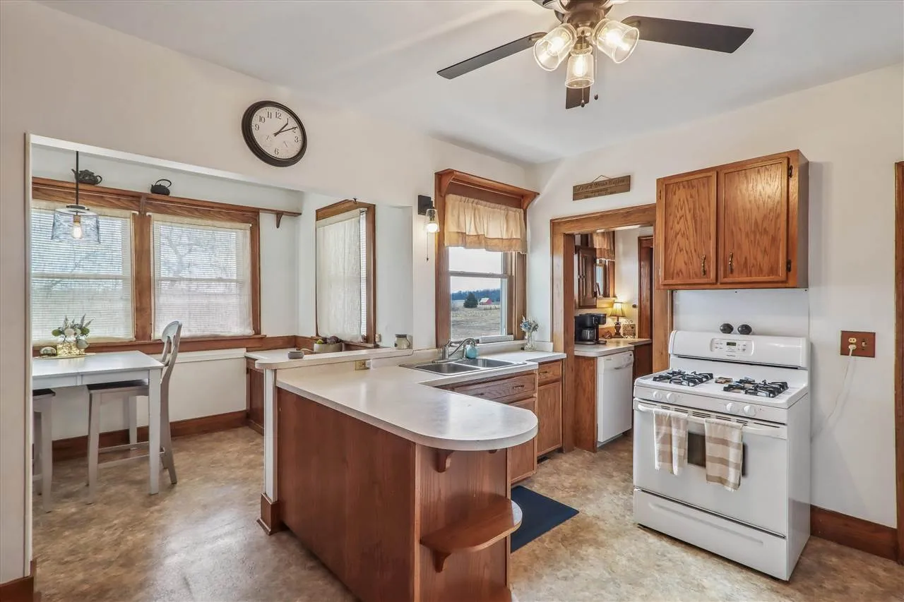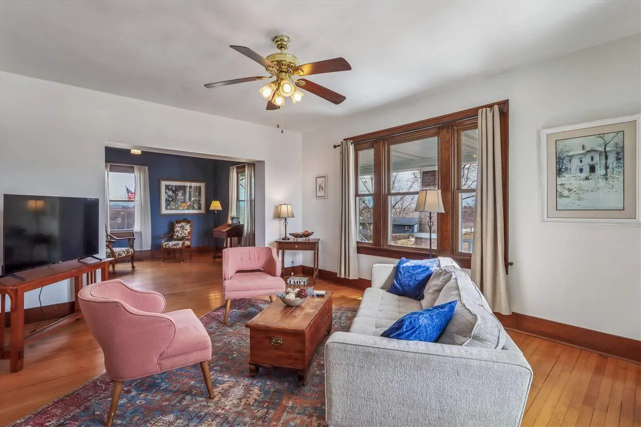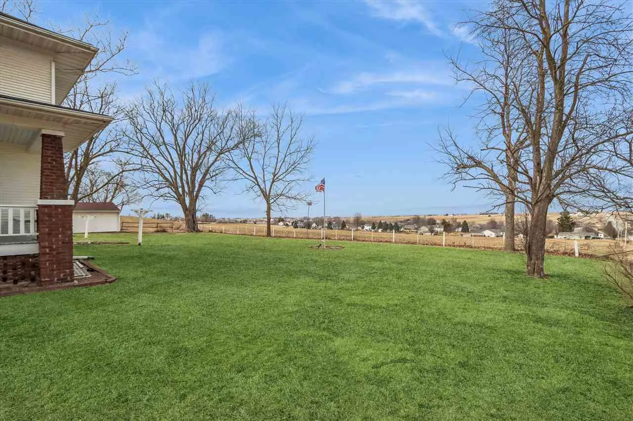 Immediate possession for this in town acreage in the College Community School District! Private 1.4 acre lot with INCREDIBLE views & breath taking SUNSETS! 5 bedroom 2 bath home majestically perched high on a hill. No neighbors beside or behind you. The main floor has a freshly painted bedroom and a newly remodeled bathroom. So much character with stately & in tact natural oak woodwork, HW floors & quality built ins, a laundry chute & a walk up attic with many possibilities! Large bedrooms & ample storage through out. Many updates including upstairs bathroom remodel ’22, custom shower, flooring. toilet & sink. Fresh interior paint. Plenty of room on this acreage for your new outbuildings!