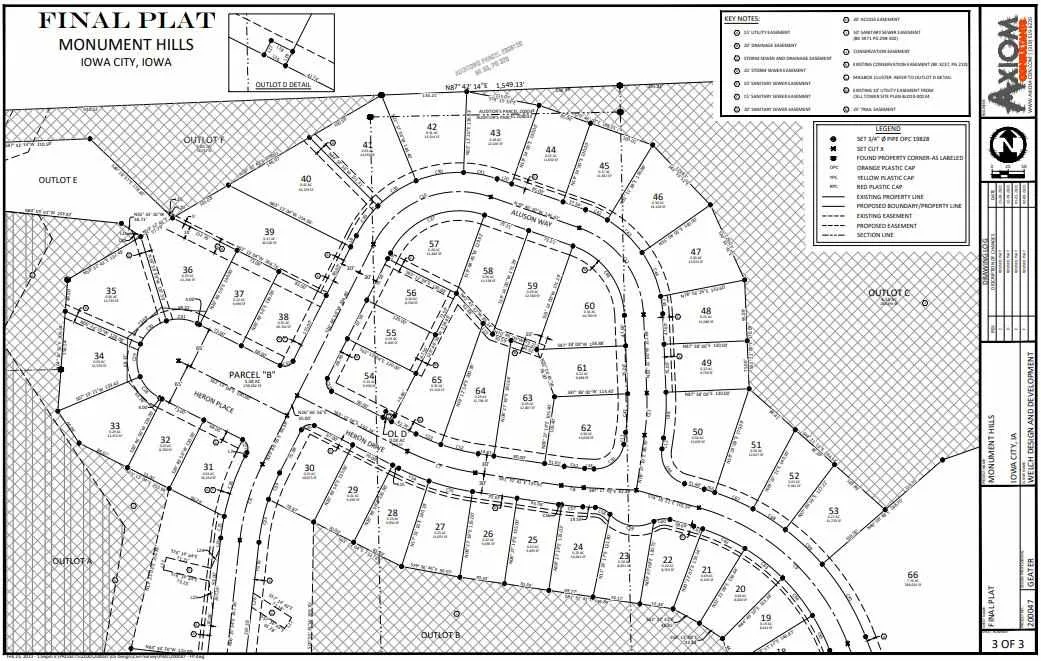 Come live at Monument Hills Subdivision! Iowa City’s newest East Side development!! Exceptional and highly desired single family home lots located on the East side of Iowa City near the corner of Rochester Avenue and Scott Blvd. Enjoy the beautiful lots surrounded by well-established trees, wild life, & trails. Hickory Hill Park, Harvest Preserve & Calder Park are within walking distance. These Lots are just minutes away from Regina High School and City High School. Quick and easy access to Interstate 80, the University of Iowa and downtown Iowa City. Other notable destinations within walking distance: University of Iowa Health Care (Urgent Care Clinic – Scott Blvd), Forefront Dermatology, Jones Family Dentistry, Iowa City Orthodontics, Anytime Fitness, Blackstone restaurant, Short’s Burgers Eastside, Dairy Queen, Two Rivers Bank & Trust, AAA Iowa City, Bell A Salon & Spa, Serenity Yoga & Pilates Studio, etc. (Some business may change) Choose your own builder or use one of the Preferred Builders for construction of your new custom home.