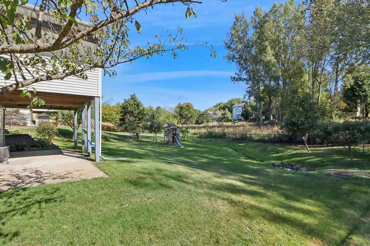 The front entry has been recently enhanced with stone for exceptional curb appeal. Step inside to a grand entry featuring high ceilings, hardwood floors, and abundant natural light. The bright kitchen offers a breakfast bar overlooking the dining area, with sliders leading to a 12×12 screened porch and attached 12×10 deck—perfect for relaxing or entertaining. A French door opens to a versatile den off the living room. Beautiful oak trim runs throughout the home. The upper level features three bedrooms, including a spacious primary suite with a large double vanity bathroom and walk-in closet. The expansive walk-out lower level offers a generous rec room, full bathroom, and access to the patio. An oversized two-car garage includes a dedicated shop area for added functionality. This home reflects true pride of ownership with thoughtful updates and excellent care throughout.
