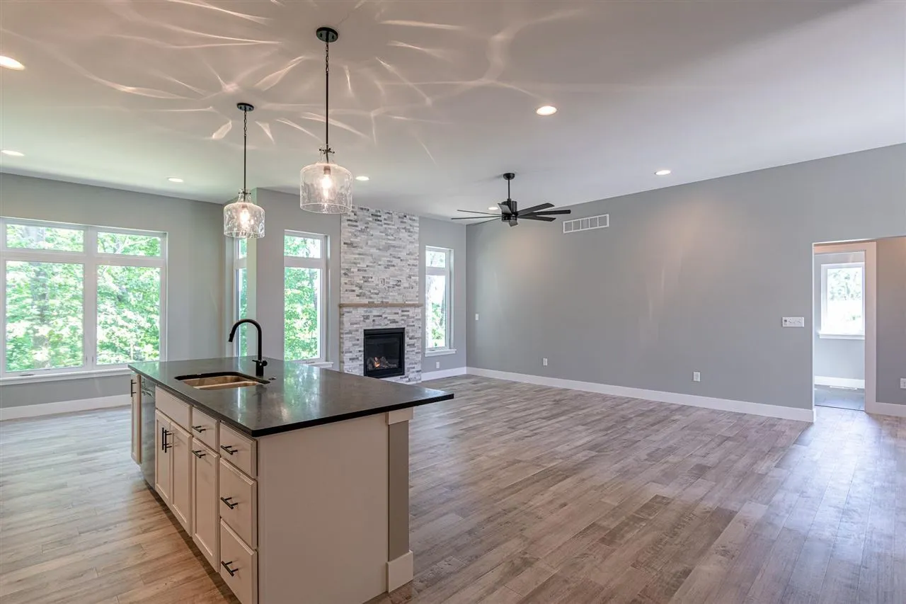 Fantastic 2700+ square foot walkoiut Ranch in Coralville with wooded views! 3 car garage opens to a good size mudroom. From there, kitchen (with a big island) has views to the dining room and the great room with a gas fireplace. Dining room has access to the screened in porch – which you can also get to from the huge master bedroom. Master has a private double vanity bathroom with a spacious walk in closet. 2 more bedrooms and 1 bath round out the main. LL has Big Rec Room, Wet Bar, 2 bedrooms, bath, storage space and a garden room. ***The first photo is of recent progree and All other Photos are of a Similar Property***