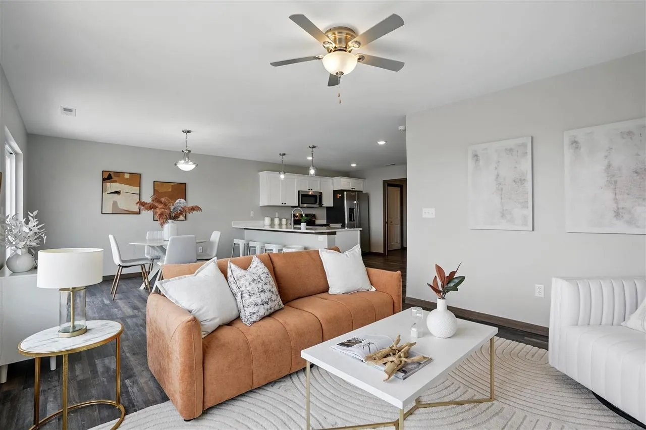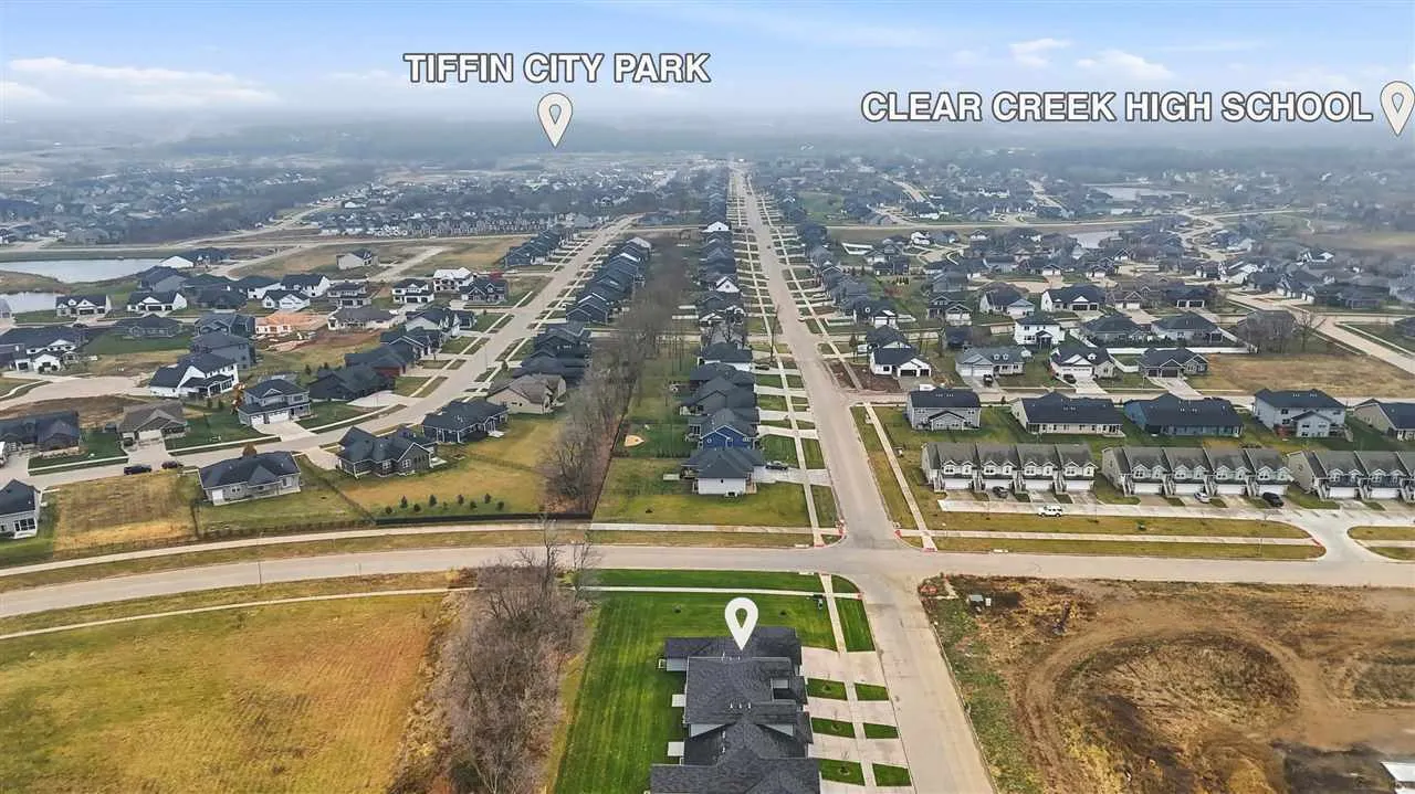 New construction interior zero-lot with functional layout and modern finishes. *Photos of Similar Property* This 3-bedroom, 2.5-bathroom home offers an open main level with an L-shaped kitchen featuring stainless steel appliances and a breakfast bar adjacent to the dining and living areas. Sliding door leads to a patio and open backyard with expansive views backing up to Veritas Church—no rear neighbors for a sense of space and privacy. The main floor also includes a convenient powder room and a combined mud/laundry room off the garage entry. Upstairs you’ll find three bedrooms, including a primary suite with a walk-in closet and double vanity en suite. A full hall bath serves the additional bedrooms. Easy access to I-380, I-80 and close to shopping, dining, and everyday essentials make this a practical choice for a variety of lifestyles. Construction is complete and the property is available for a quick possession!