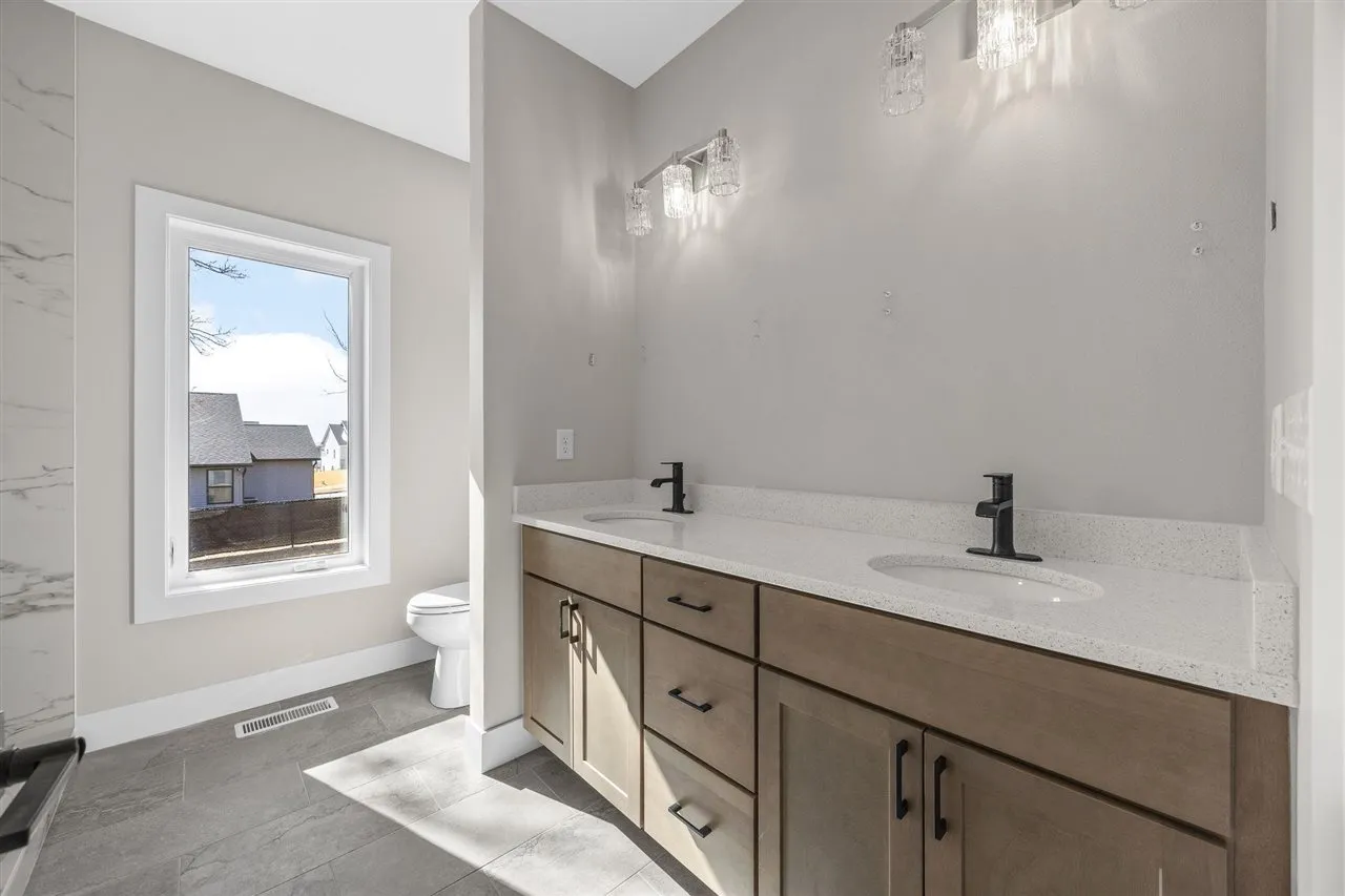 This beautiful custom built 5 bedroom 3.5 bath, 3040 sq ft home is waiting for a new family!! Located near the future Park Place, Tiffin schools, restaurants, parks and walking trails! This stunner has open floor plan with windows galore and a custom stone fireplace that screams- I’m home!! Enjoy cooking and spending time in this kitchen with it’s large island, quartz countertops, corner sink that looks out to your private backyard and a large pantry! Primary boasts a large en-suite with walk in closet! You are going to love the drop zone off the garage with a laundry room, perfect for any family! Lower level has two additional rooms and cozy oversized family room with a wet bar area! Enjoy your private backyard from your deck and concrete patio space.