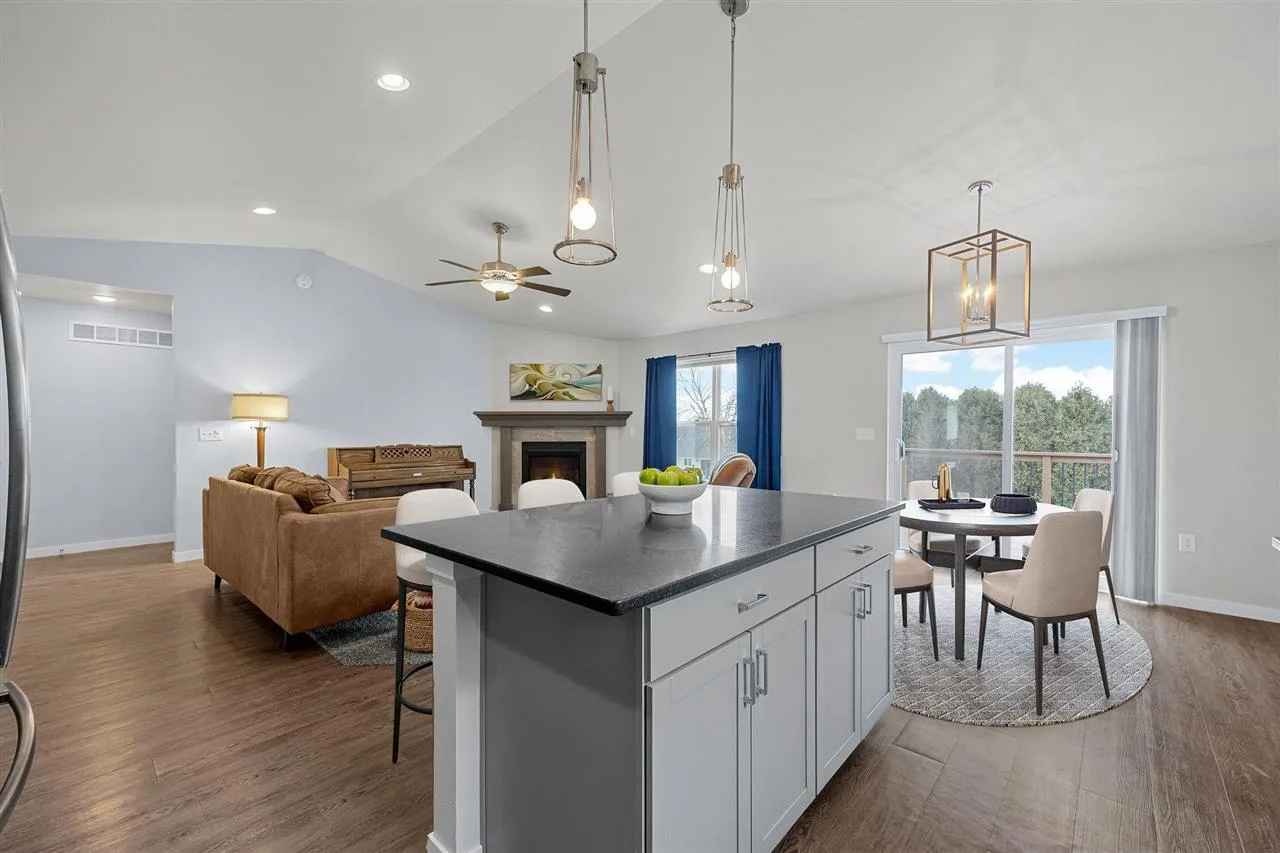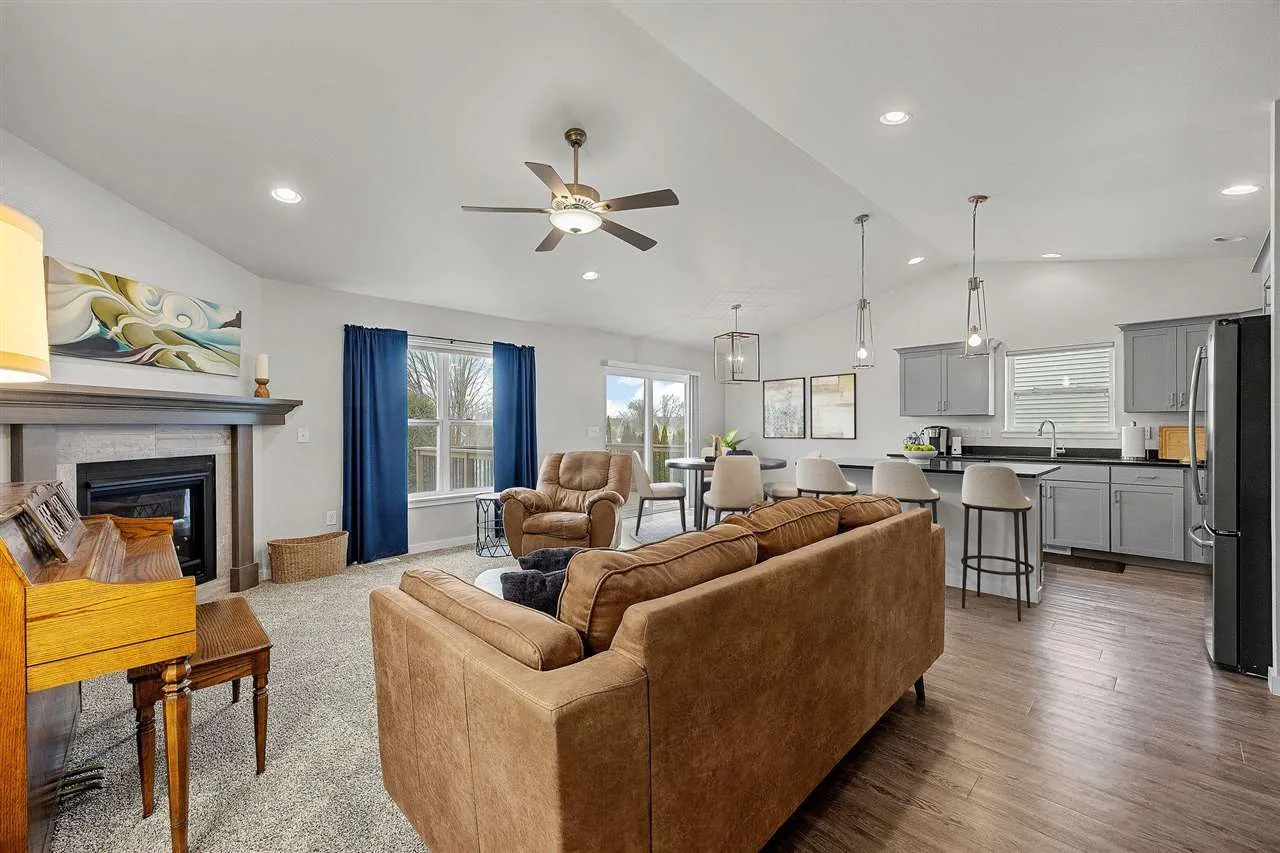 Experience the best of both worlds—the privacy of a single-family home with the low-maintenance convenience of condominium living in one of Tiffin’s newer developments. At the heart of this home an upscale kitchen shines with gleaming granite countertops, a generous center island, soft-close cabinetry, and energy-efficient GE appliances. The open layout flows seamlessly from the elegant foyer entrance into the livingroom featuring a corner fireplace and dining area with sliding glass doors to the elevated back deck. The private primary suite offers a peaceful retreat, complete with ensuite bath featuring a quartz double vanity, sleek Moen fixtures, and a spacious walk-in closet. Convenience continues with main-floor laundry/mudroom with direct access to the garage and an additional bedroom and bath. The finished walkout lower level expands your living space with a generous family room perfect for movie nights or game days, two additional bedrooms & a full bathroom as well as abundant storage. Enjoy carefree living year-round with lawn care and snow removal handled by the HOA. Within 10 minutes to UI hospital in North Liberty, within 20 min. to UIHC main campus, & easy access to I-80. Dining & kitchen island are virtually staged.
