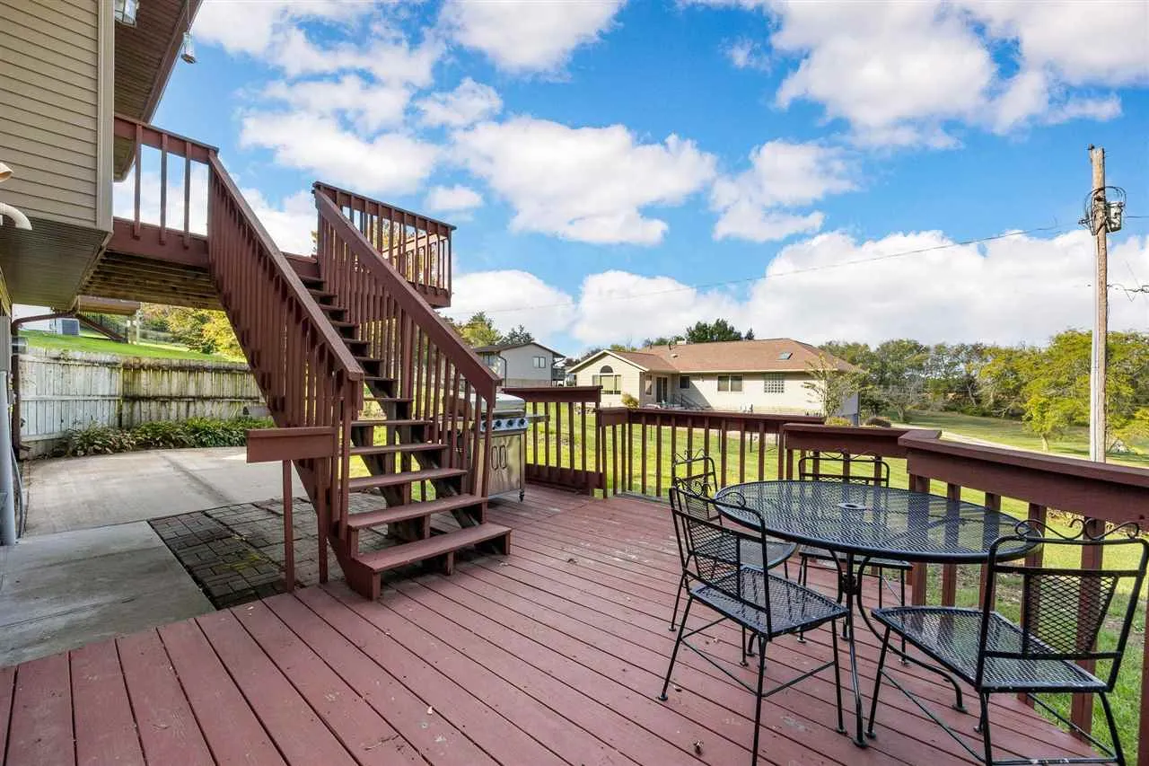 Lakefront living at its finest on 0.47 acres! This updated ranch boasts a 2022 gourmet kitchen with oversized island, walk-in pantry, new cabinets, appliances, and recessed lighting. Enjoy stunning lake views from the main-level family room with gas fireplace and wet bar. The main primary suite features a walk-in closet and fully remodeled bath (2025). Lower level offers a second primary suite, large rec room with wet bar, and walkout to the lower deck. Recent updates include roof, siding, and garage/shed (2020), plus furnace, A/C, and water heater (2025). Outdoor living shines with upper & lower decks, mature trees, 32×40 concrete driveway, shed, and invisible dog fence. Just 400 yards to Scales Pointe Marina & Bobbers Grill, with trails to Coralville Lake and a neighborhood playground nearby. Modern updates, spacious living, and a lakeside lifestyle—perfect for entertaining or relaxing!