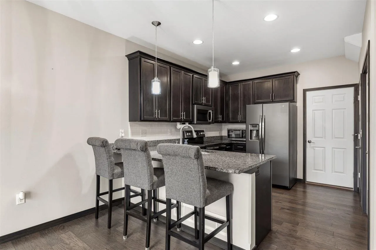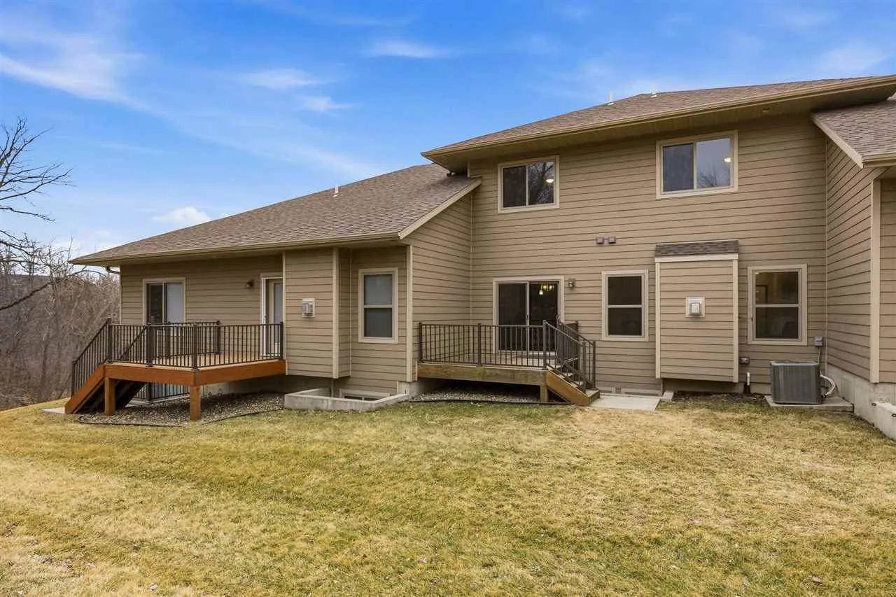 LOCATION LOCATION LOCATION! Room to live, work, study and relax! This 4-bedroom, 3.5-bath townhouse-style condo delivers 2,213 sq ft of smart, flexible space. The open main level features a modern kitchen with granite countertops, slate appliances, and a breakfast bar that flows effortlessly into the living and dining areas. Engineered wood floors and gas fireplace on the main. Upstairs, the primary suite offers a private retreat with a large walk-in closet and en-suite bath, while two additional bedrooms, another full bath up and laundry up provide a cozy nesting retreat. The lower-level bedroom and full bath are perfect for guests, a home office, hobbies or multi-purpose living. Step outside to the recently power washed deck just off the dining room, providing a great space to relax or enjoy the tree lined outdoor views of this beautiful property. Located just a minutes from Brown Deer Golf Course, I-80, shopping, restaurants, sports and the U of I Hospitals & Clinics River Landing Campus, this is an ideal location to meet any or all of your living needs. Beautiful condo community surrounded by trees is simply perfection!