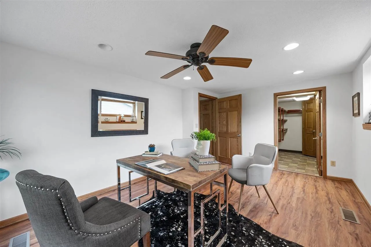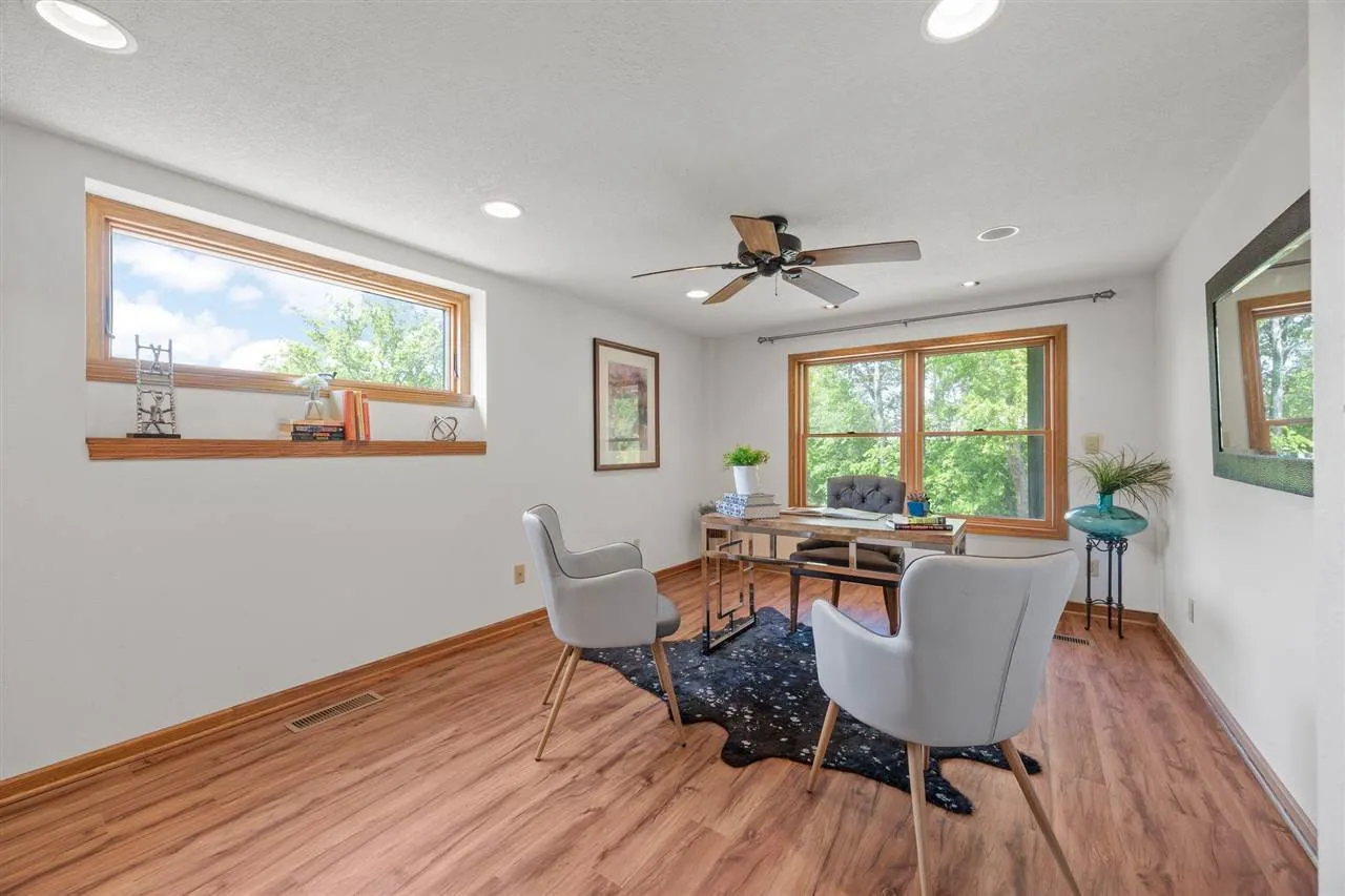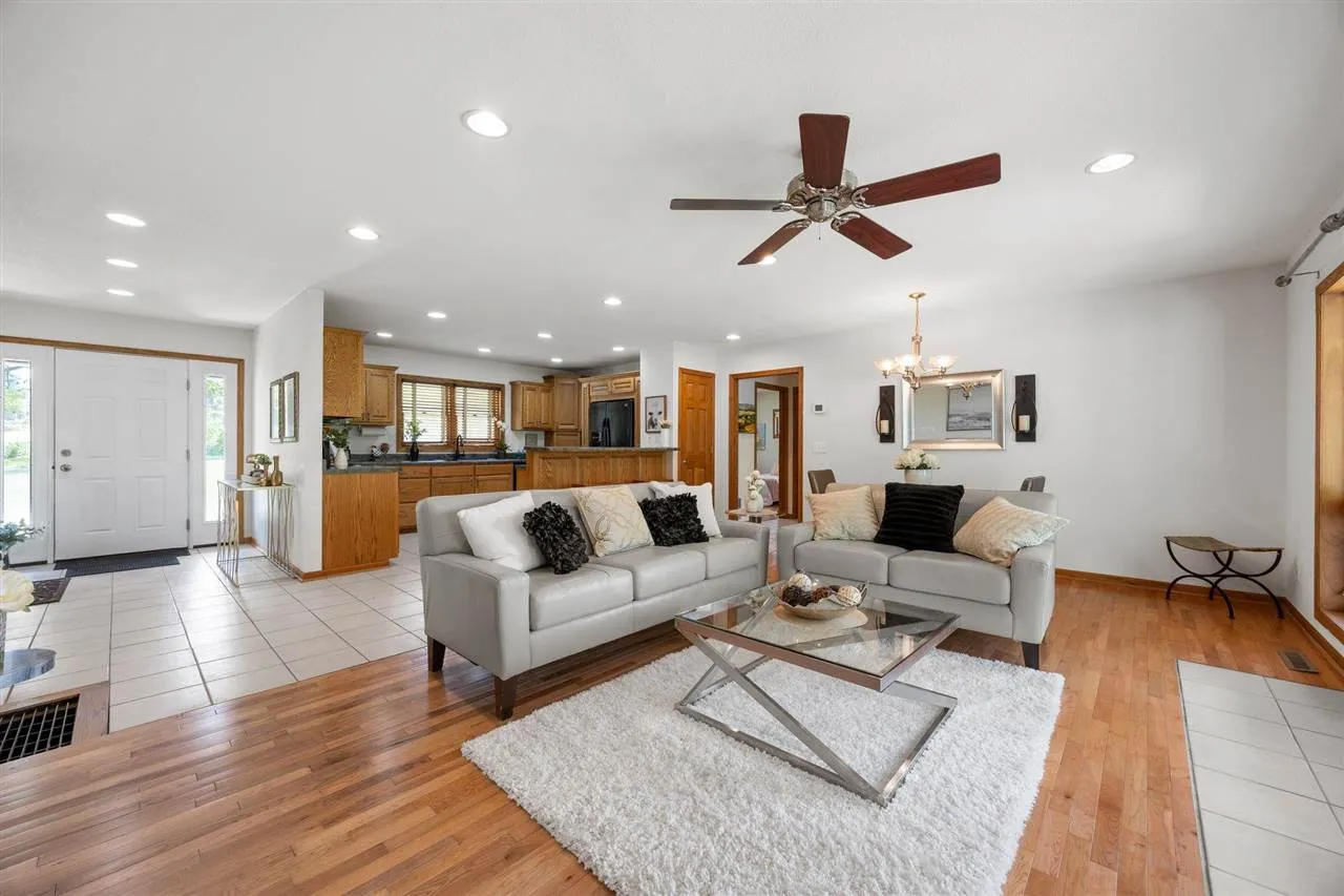 Escape the ordinary with this exceptional walkout ranch with cement board siding where craftsmanship and thoughtful design meet. Located just beyond town near restaurants, medical facilities & scenic parks, this home offers the ideal mix of privacy & convenience. The open floor plan features premium, energy-efficient materials like hardwood flooring, geothermal heating & cooling & quality windows. The main level includes a luxurious primary suite with 2 walk-in closets & a cozy fireplace in the living room for relaxing evenings. The walkout lower level is perfect for an in-law suite, complete with its own bedroom, bath, kitchenette & fireplace. Extras include a heated garden shed, a built-in storm shelter & a whole-home water filtration system. Enjoy Country Estates’ Cove on Coralville Lake for canoeing & kayaking. Residents can ask to join one of the existing docks or apply to the Corps of Engineers to install a new one.