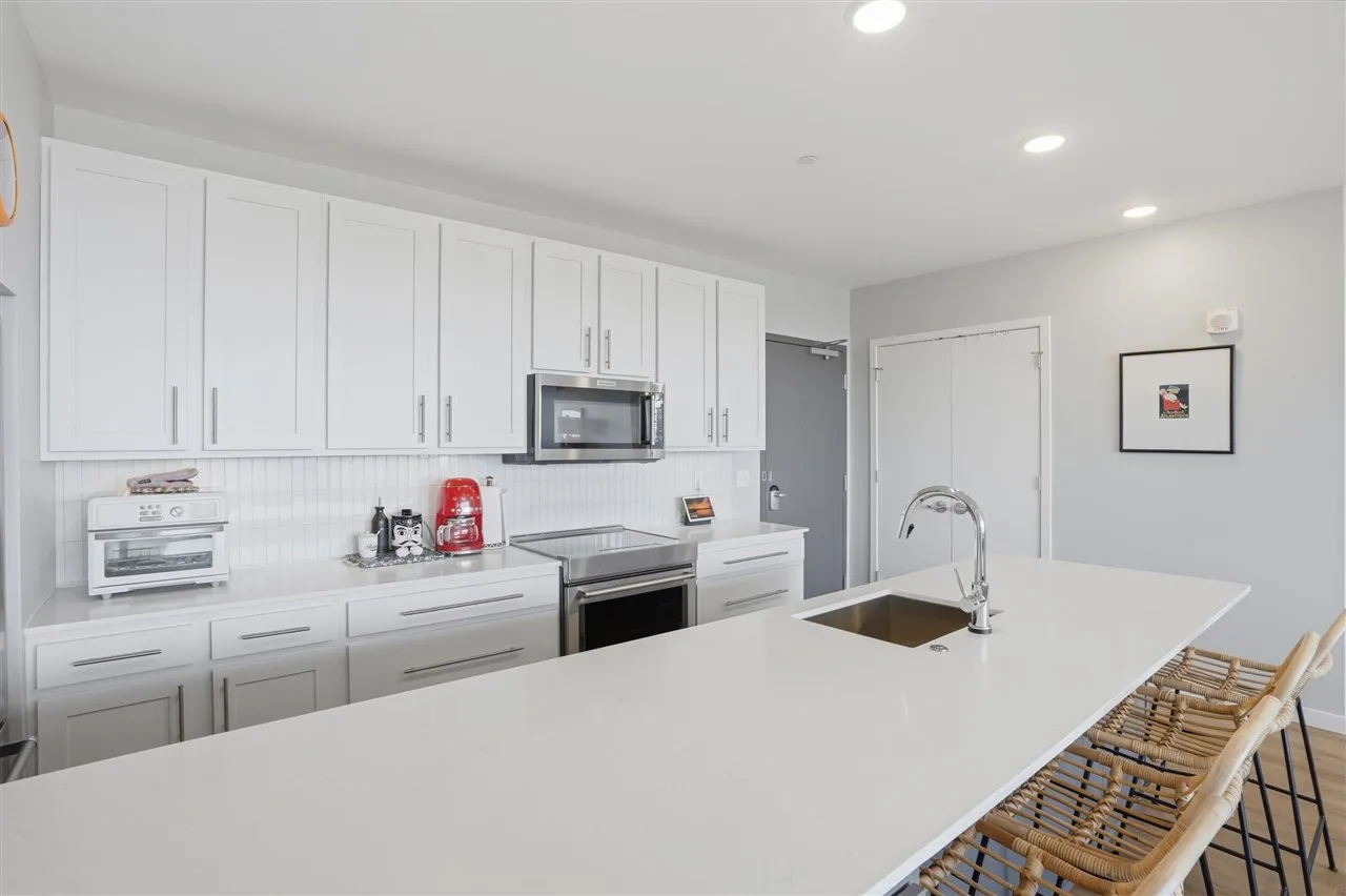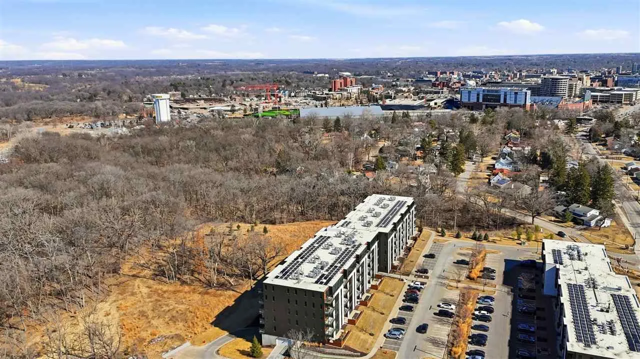This top floor condo in the North Building of One University Place offers a north-facing unit with floor-to-ceiling windows, bright natural light, and wooded prairie views from a private balcony. Featuring 2 bedrooms and 2 full baths, the open-concept layout is designed for both comfortable living and easy entertaining, with luxury vinyl plank flooring throughout, quartz countertops, and a modern kitchen complete with upgraded KitchenAid stainless steel appliances, white cabinetry, and soft-close drawers. Both bathrooms are fully tiled with Kohler fixtures and walk-in tiled showers, and the spacious primary suite includes a walk-in closet and private bath. An in-unit washer and dryer are included, along with one secured underground parking space (P1, #128) and a private storage unit. Building amenities include concierge service with a staffed front desk (Mon–Fri), secure entry, heated garage, two elevators, a welcoming lobby, resident common room, and a 24/7 HOA-maintained gym located in the South Building. Ideally situated within walking distance to UI Health Care’s main hospital, Kinnick Stadium, Carver-Hawkeye Arena, and the UI College of Law, this condo blends modern finishes, convenience, and an unbeatable location.