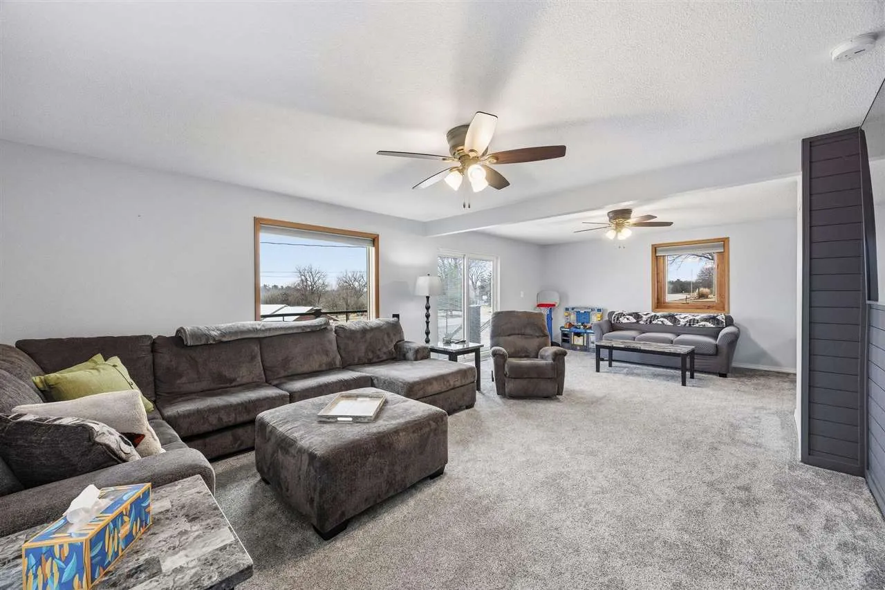 Located just minutes from Lake Macbride, this well-maintained Solon home offers over 3,700 sqft of living space, a flexible layout with multiple living areas, and sits on a large corner lot in a highly desirable location. The main level features an open layout connecting the living room, dining area, and kitchen, along with a convenient half bathroom. Large windows bring in natural light, while both a gas fireplace and wood-burning stove add warmth and character, and this level walks out to the patio for easy access to the outdoor space. Upstairs you’ll find three bedrooms including a spacious primary suite, a full bathroom, and an additional living area with access to the deck—ideal for a second lounge, office, or entertainment space. The generous square footage offers flexibility for a variety of uses and room to grow. Additional highlights include updated LVP flooring, a durable steel roof, central vacuum system, and a large garage with extra storage. Located near Lake Macbride State Park with convenient access to boating, fishing, hiking, and biking, while still just a short drive to Solon, North Liberty, and Iowa City.
