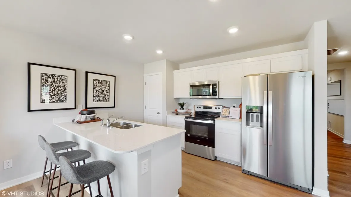 Welcome home to the Aldridge in Prairie Village – a 3 bedroom, 2 bath ranch with a 2 car garage and 1,272 sq. ft. of well-designed living space. Ideal for any stage of life, this open-concept layout offers comfort and functionality. The primary suite is located at the front of the home, complete with a walk-in closet and private bath with dual vanities, and a walk-in shower with ceramic tile. The main living space flows seamlessly from the kitchen—featuring 9-ft ceilings, white cabinetry, subway tile backsplash, stainless steel appliances, and a large island—to the dining and living room with a cozy electric fireplace. At the back of the home, you’ll find two additional bedrooms and a full bath, plus a centrally located laundry room for added convenience. Ready to call this home? Contact us today to schedule a personal tour! Ask about builder incentives with preferred lender. Photos similar to.