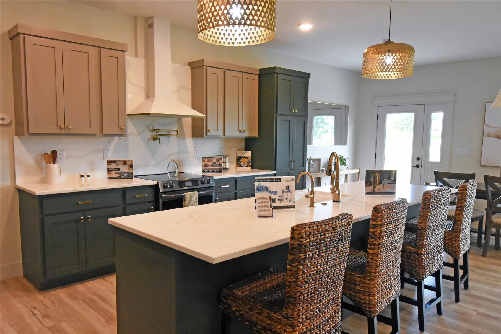 Model/Parade Home now for sale! This new construction ranch is a zero-entry, Platinum Certified Healthy Home designed with comfort, safety, and wellness in mind. Located on a quiet street backing to Hunter’s Ridge Golf Course and just minutes from Indian Creek Country Club and top-rated schools, this thoughtfully designed home offers true single-level living with four bedrooms, an office, two and a half baths, and a convenient laundry room. The zero-entry design includes extra-wide hallways and doorways, low thresholds, and a specially designed safety room. The inviting main living area features luxury vinyl plank and tile flooring, tray ceilings, a cozy fireplace, and a central vacuum system. The gourmet kitchen includes quartz countertops and backsplash, champagne gold fixtures, stainless steel appliances, a large pantry, and a breakfast nook. The primary suite offers a tray ceiling, walk-in closet, and spa-like bath with quartz counters and an Onyx shower. As a Platinum Healthy Home, it includes a SONA whole-home air purification system, reverse osmosis drinking water system, hard surface flooring throughout, touchless faucets, and motion-activated lighting. Enjoy relaxing on the patio overlooking the golf course in this beautiful, health-focused home.
