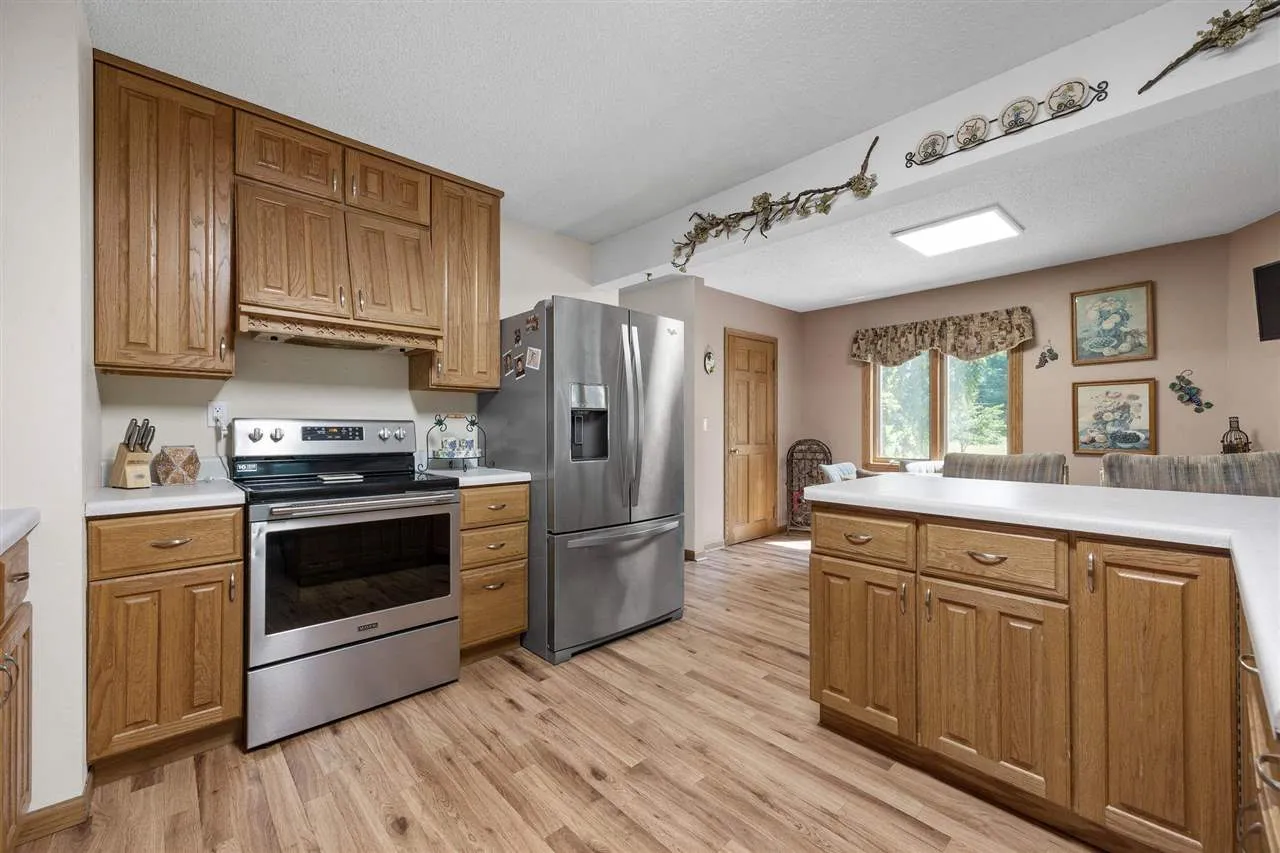 A rare opportunity to own a unique home with breathtaking lake views, beautiful landscaping, and an impressive 30’ x 50’ shop! The main level offers an open kitchen with stainless steel appliances, pantry, screened in porch, and convenient main-floor laundry. Upstairs features a spacious primary suite with two walk-in closets and lake views, plus two additional bedrooms and a full bath with dual sinks and walk-in shower. The walk-out lower level offers great natural light, a large flexible living space, and direct access to the paved driveway and 30’ x 50’ shop. The shop has solar panels helping offset heat and electricity. Also a brand-new furnace will be installed prior to closing.
