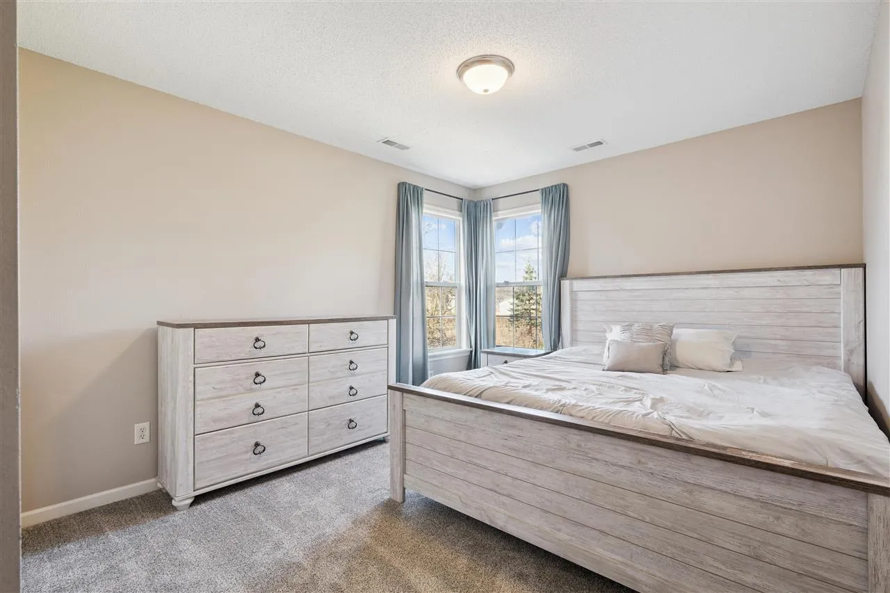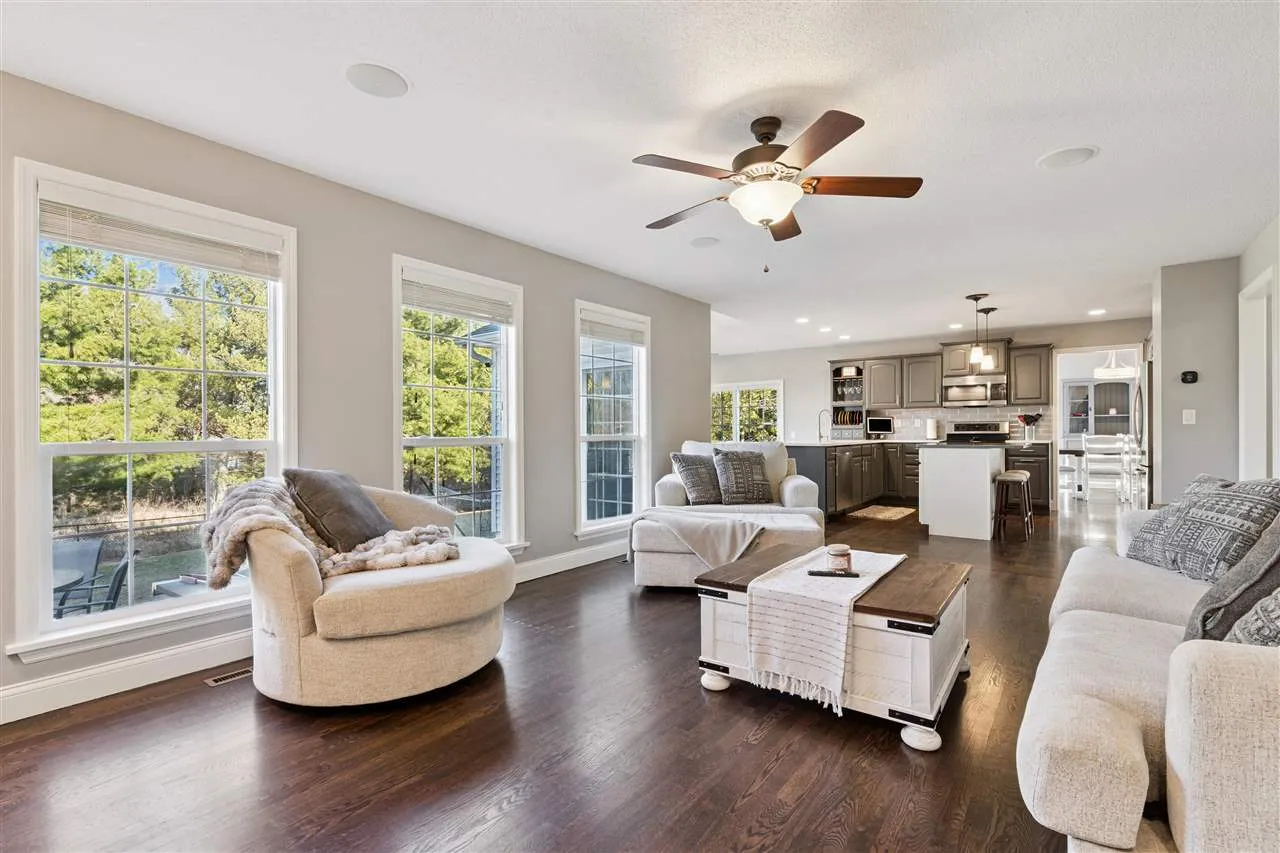 Beautifully maintained two-story home in the desirable Autumn Woods neighborhood! The open concept main level features rich hardwood floors, abundant natural light, and a spacious living room that flows seamlessly into the kitchen and dining area. The kitchen offers a large center island, stainless steel appliances, ample cabinetry, and great prep space for everyday living or entertaining. Upstairs you’ll find generously sized bedrooms including a spacious primary suite with a beautifully updated bath featuring a freestanding soaking tub, dual vanity, and tiled shower. The finished lower level provides flexible living space perfect for a rec room, home office, or workout area. Enjoy outdoor living in the private backyard with mature trees, a fully fenced yard, and a composite deck with a sunken hot tub—perfect for relaxing or entertaining. Convenient location near parks, shopping, dining, and major roadways.