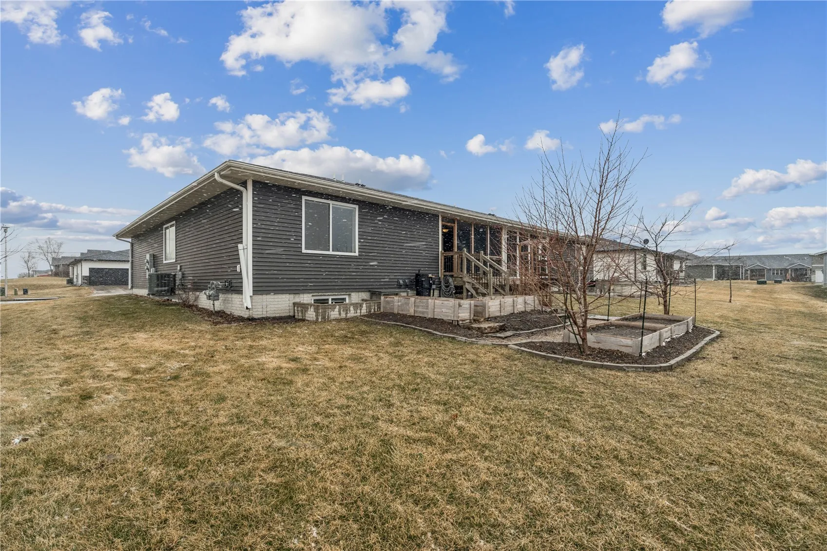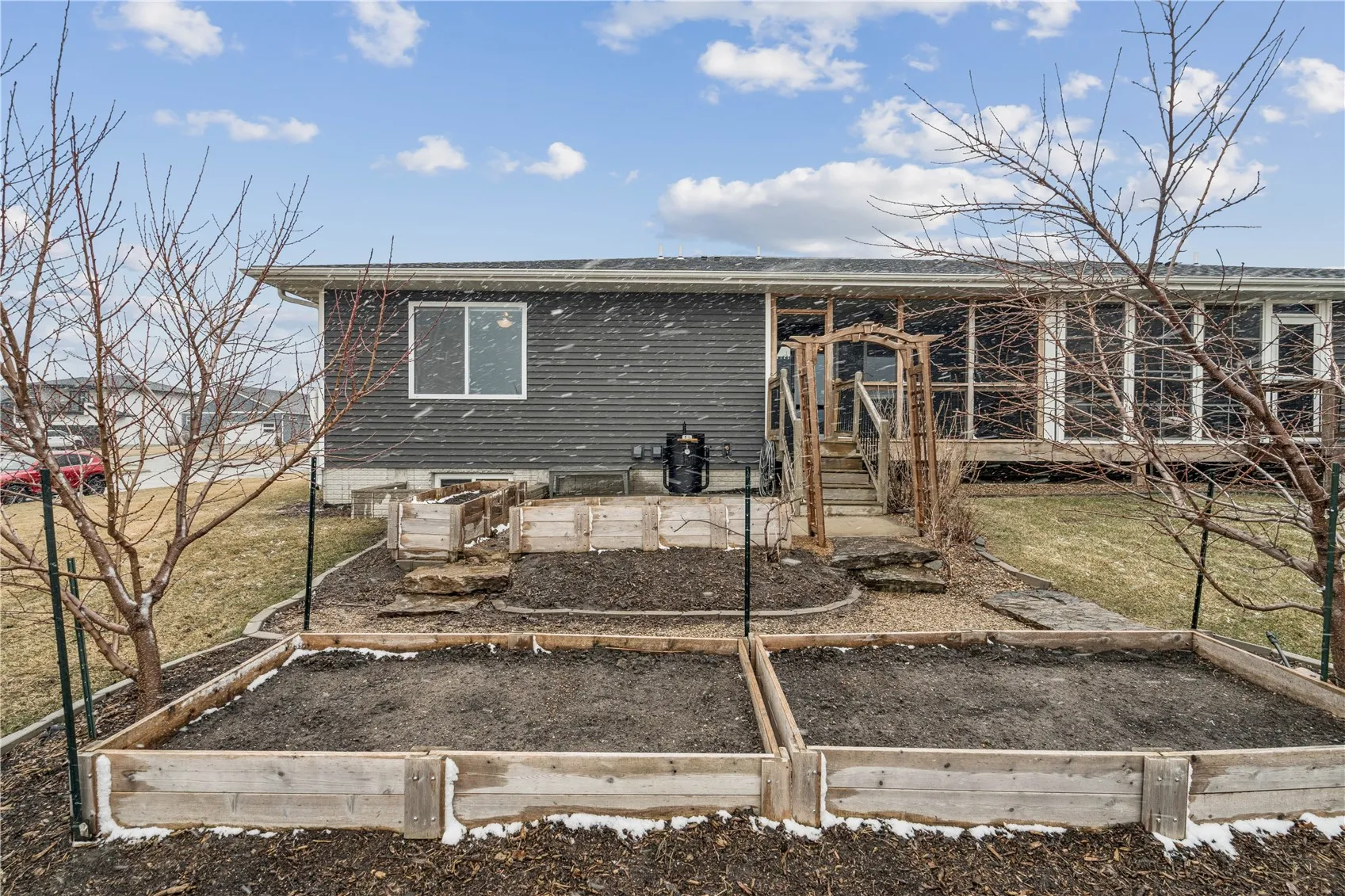 A CONDO WITH GARDENING OPPORTUNITY AND 3 SEASON ROOM! Welcome Home to this inviting 3-bedroom, 3-bath ranch-style condo offering a rare gardening opportunity allowed by the association. This is a boutique association of just 11 homes. Surrounded by open green space and a calm setting, this residence feels more like a private retreat than typical condo living. A screened-in sunroom provides the perfect place for extended living or use as a pup or kitty haven. The current owners have enhanced this space with raised garden beds and a charming arbor — an uncommon extension of outdoor living. Inside, vaulted ceilings and transom window allows the natural light create an airy, welcoming atmosphere. The main level offers an open floor plan with for everyday comfort and easy entertaining. The finished lower level adds valuable living space, along with a versatile flex room ideal for a home gym, hobby area, or organized storage (or non-conforming 4th bedroom). Additional highlights include a heated attached garage, professional association management, and pet-friendly guidelines allowing up to two dogs (up to 80 lbs each) and two cats. Meticulously maintained and move-in ready, this home delivers a simplified lifestyle without sacrificing warmth, character, or space.