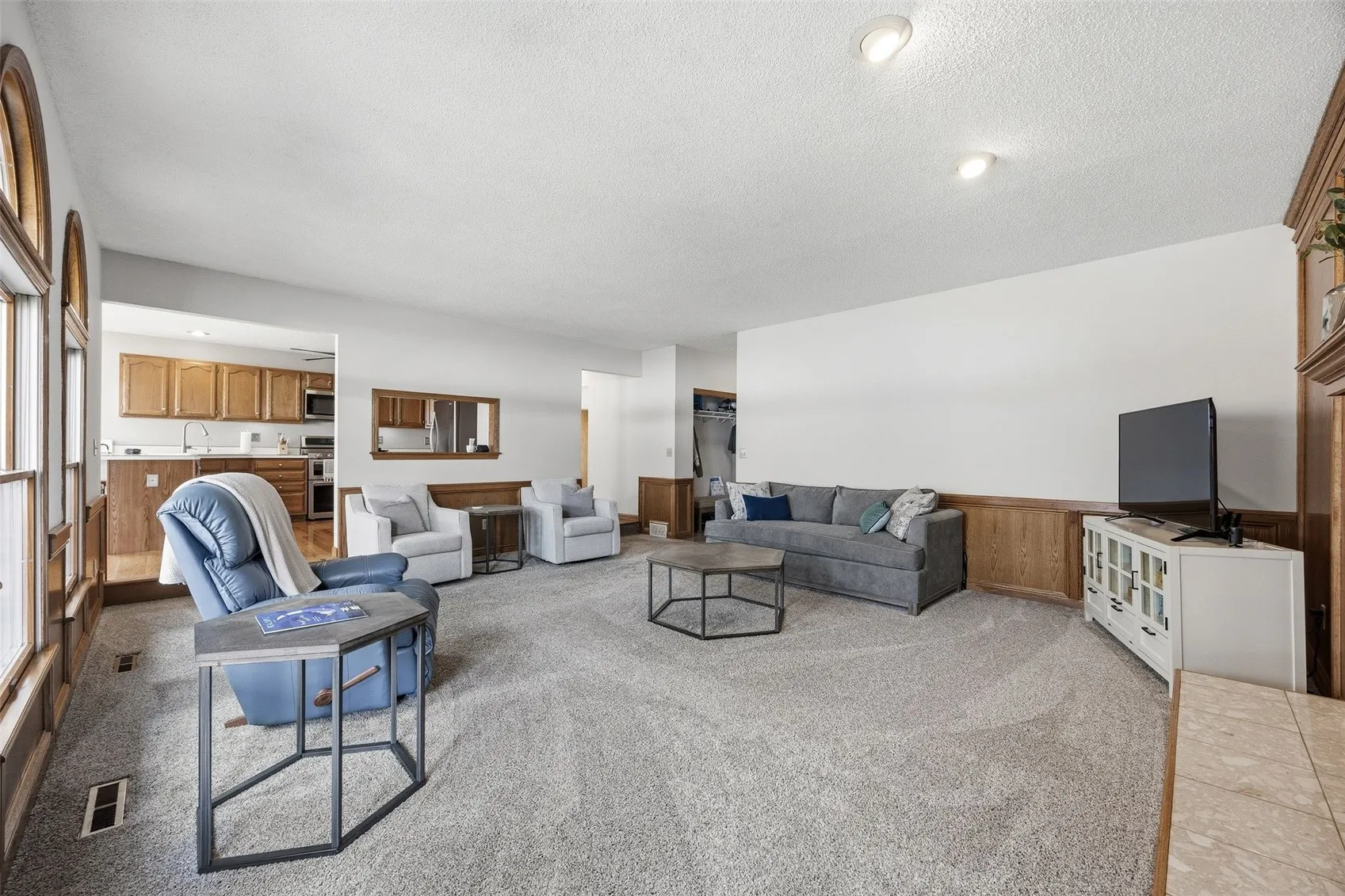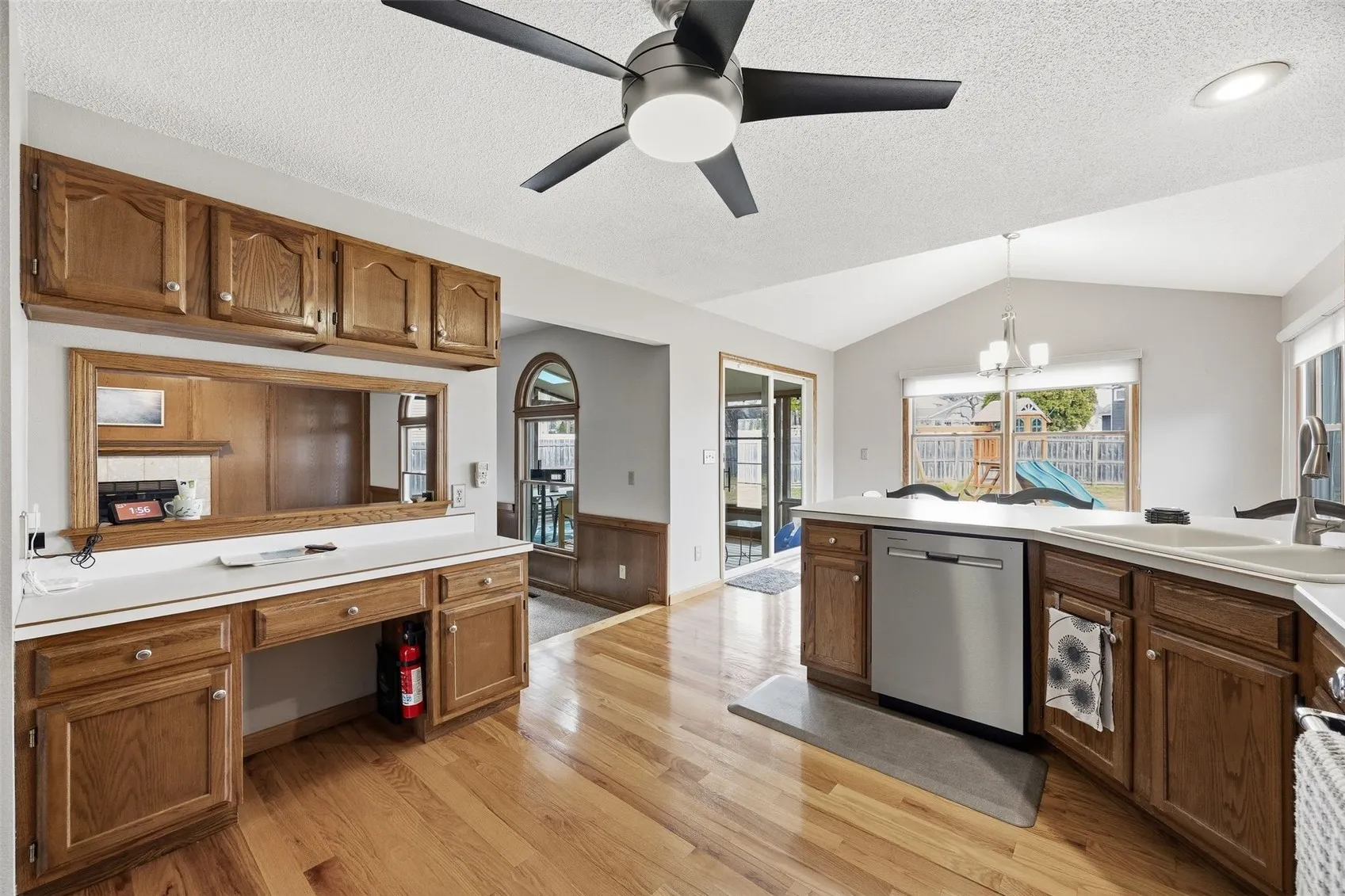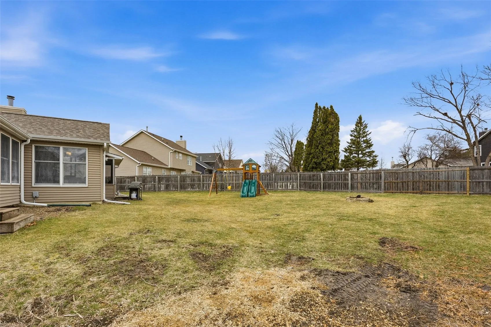 This spacious ranch home offers comfort, functionality, and a convenient Marion location near schools, parks, shopping, and the community pool. The main level features an open layout with beautiful arched windows, hardwood floors, and a large eat-in kitchen with stainless steel appliances and easy access to the screened-in porch—perfect for relaxing or entertaining. The living area flows into a spacious family room with a cozy gas fireplace, and the main floor also includes convenient laundry.The finished basement adds valuable living space, including a non-conforming bedroom, plenty of storage, and flexible areas for hobbies, a workout room, or additional living space. Numerous updates and improvements have been made throughout the home, including fresh paint in many rooms, new kitchen appliances, updated lighting, ceiling fans in bedrooms, new shower heads, improved closet organization, and updates to the garage entry closet. Recent mechanical updates include a newer water heater (approximately 6 months old) and a water softener installed about a year ago. Exterior improvements include new siding and gutters (2018), fence replacements with a new gate, new outdoor lighting, landscaping around the home and driveway, and a backyard playset. With its spacious layout, thoughtful updates, and great location, this home offers a wonderful opportunity for comfortable living and entertaining.