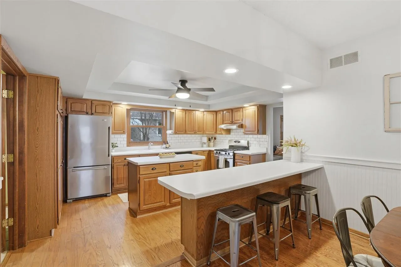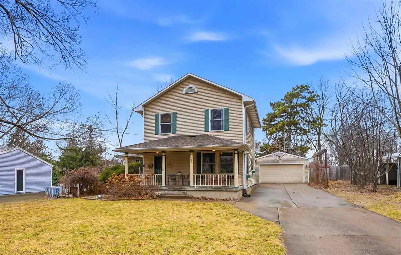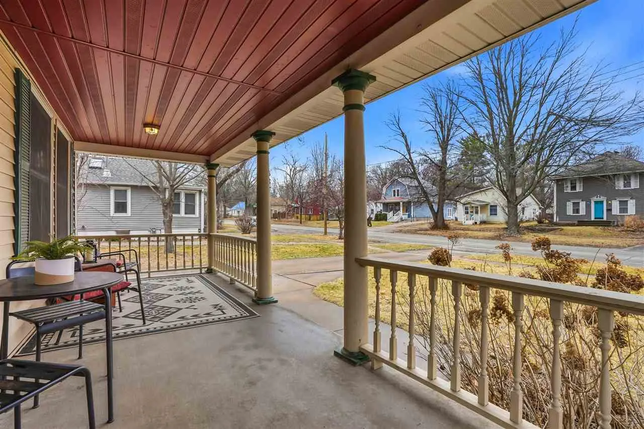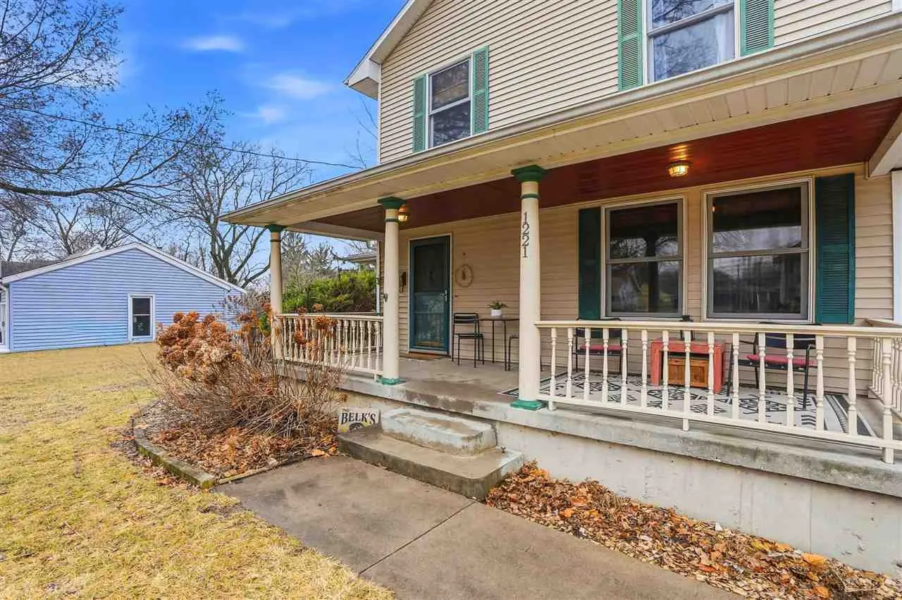 You’ll feel the charm the moment you arrive at this two-story historic home in Lucas Farms. Lovingly cared for and thoughtfully improved over time this home blends original character with impactful updates. Original hardwood floors on the main level flow seamlessly with pre-engineered hardwood installed throughout the upstairs in 2021. The upstairs bathrooms were professionally designed and fully renovated in 2024. The large front porch welcomes you inside to an oversized living room that connects to the kitchen, featuring an island and generous breakfast bar. The layout continues through the dining area into a cozy family room complete with built-in bookshelves, a skylight, and a wood-burning stove. Step outside to a backyard oasis with a privacy fence installed in 2022, plenty of lawn space, and 8×22 feet of deck space for entertaining. The attached two-car garage hosts an additional workshop space & connects to the house through a functional mudroom with a half bath, laundry nook, and drop zone. The lower level rehabbed in 2025 adds approximately 500 square feet of additional living space with new LVP flooring, drywall, electrical, and an improved ¾ bathroom. Major updates include a brand new roof (2026), HVAC (2024), and refrigerator (2025). See the attached PDF for the full list of updates. Welcome to your turn key home!