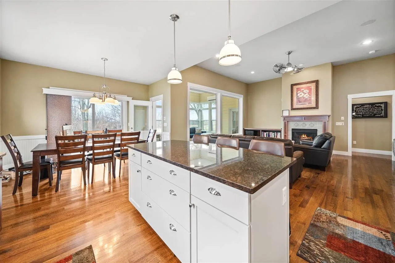 Custom built one owner home in popular Pine Hill Estates and situated on a prime lot with private, wooded views! Adjacent to University of Iowa land, this well improved walkout ranch is complete with many special amenities including gorgeous wood flooring; dramatic 11 ft. ceilings; tremendous kitchen offering 2 tone rich wood cabinetry and granite countertops, spacious island, premium appliances and a convenient pantry; recently finished sun room featuring wood plank walls and 11 ft. ceilings with lots of glass; main level laundry room with utility sink and washer/dryer; gracious living room that boasts some wonderful built-ins and a cozy fireplace; primary suite with a designer ceiling, sun room access, jetted tub and 6 ft. all tile shower; Andersen Windows; wide painted trim and wainscoting; most bedrooms with built-in bookcases and a white board wall perfect for the kids; expansive walkout lower level with a game room, family room with wet bar, office/flex room with more built-in bookcases and glass door accents plus a fitness room! There are security and audio systems; cold storage room; EV charging station; stamped concrete; and an engaging shake siding and stone front elevation! Recent updates include the roof, water heater, 7×13 composite deck with aluminum railing, finished sun room with LP siding, and some appliances!