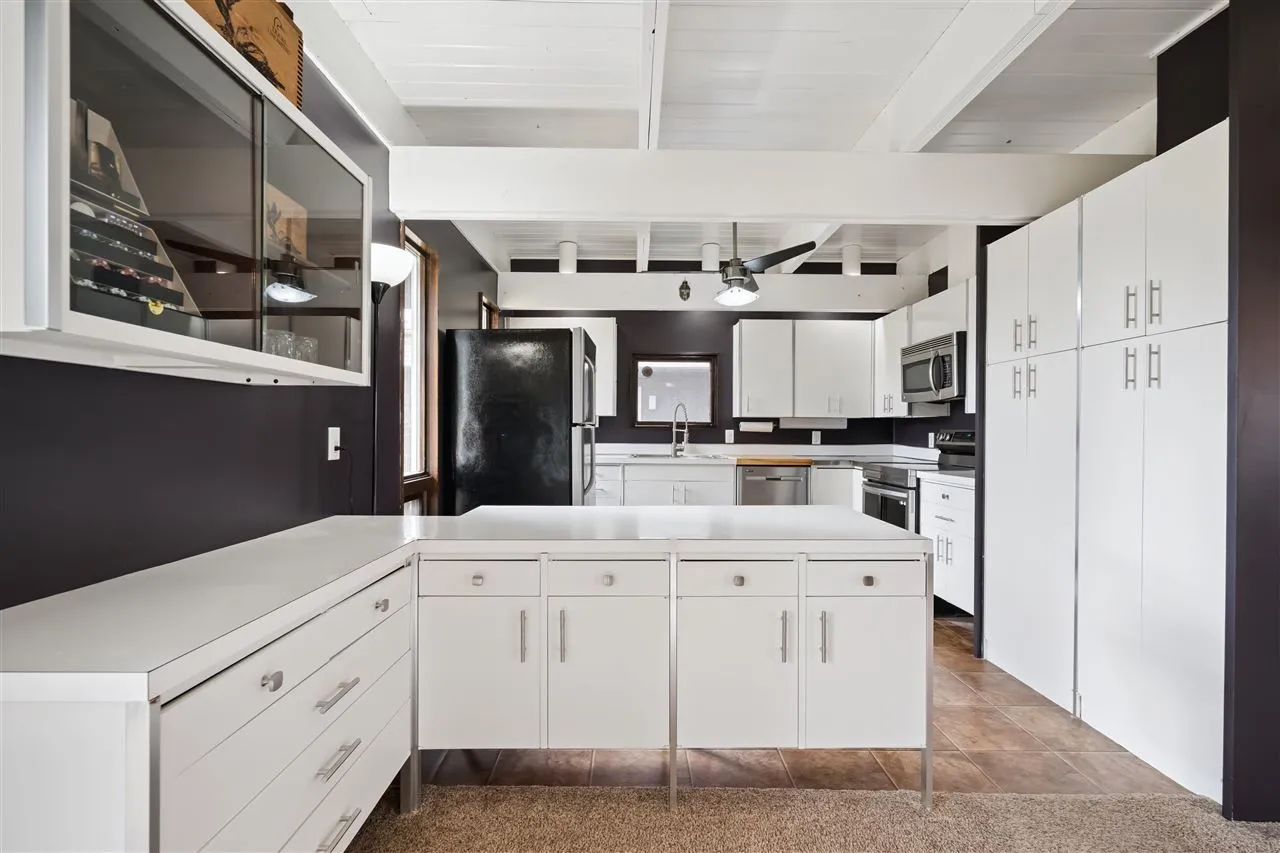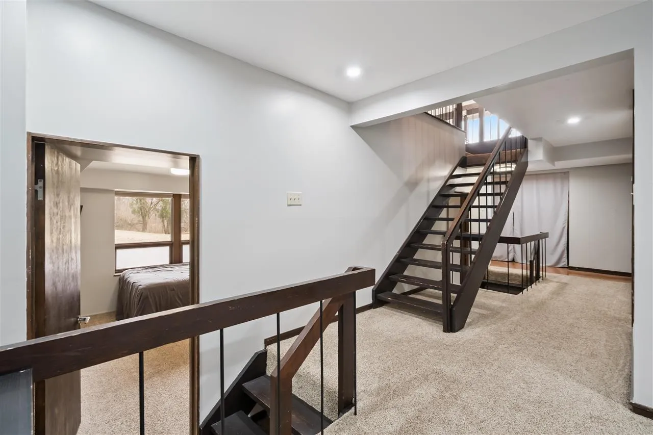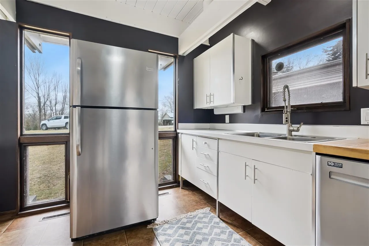 Open House 4/12 CANCELLED. Sale Pending. Enjoy lakefront living this time of year in this beautiful contemporary 1960s ranch located in MidRiver Haven, a quiet neighborhood conveniently between Cedar Rapids and North Liberty. This 3 bedroom, 2 bath home has been carefully maintained to preserve its classic 60s architectural style while offering key updates. Large windows throughout the home bring in natural light and highlight the incredible view of the lake and surrounding nature. The private backyard, patio, and corner balcony create the perfect place to relax and take in the peaceful setting. Recent updates include a new septic system installed in late 2024, active radon mitigation system, and refinished kitchen cabinetry. The oversized 36 x 26 garage is rare to find and features a new double door and freshly poured concrete in the two stall portion. Additional gravel parking pad offers extra storage space. Schedule your showing soon to experience this unique home.