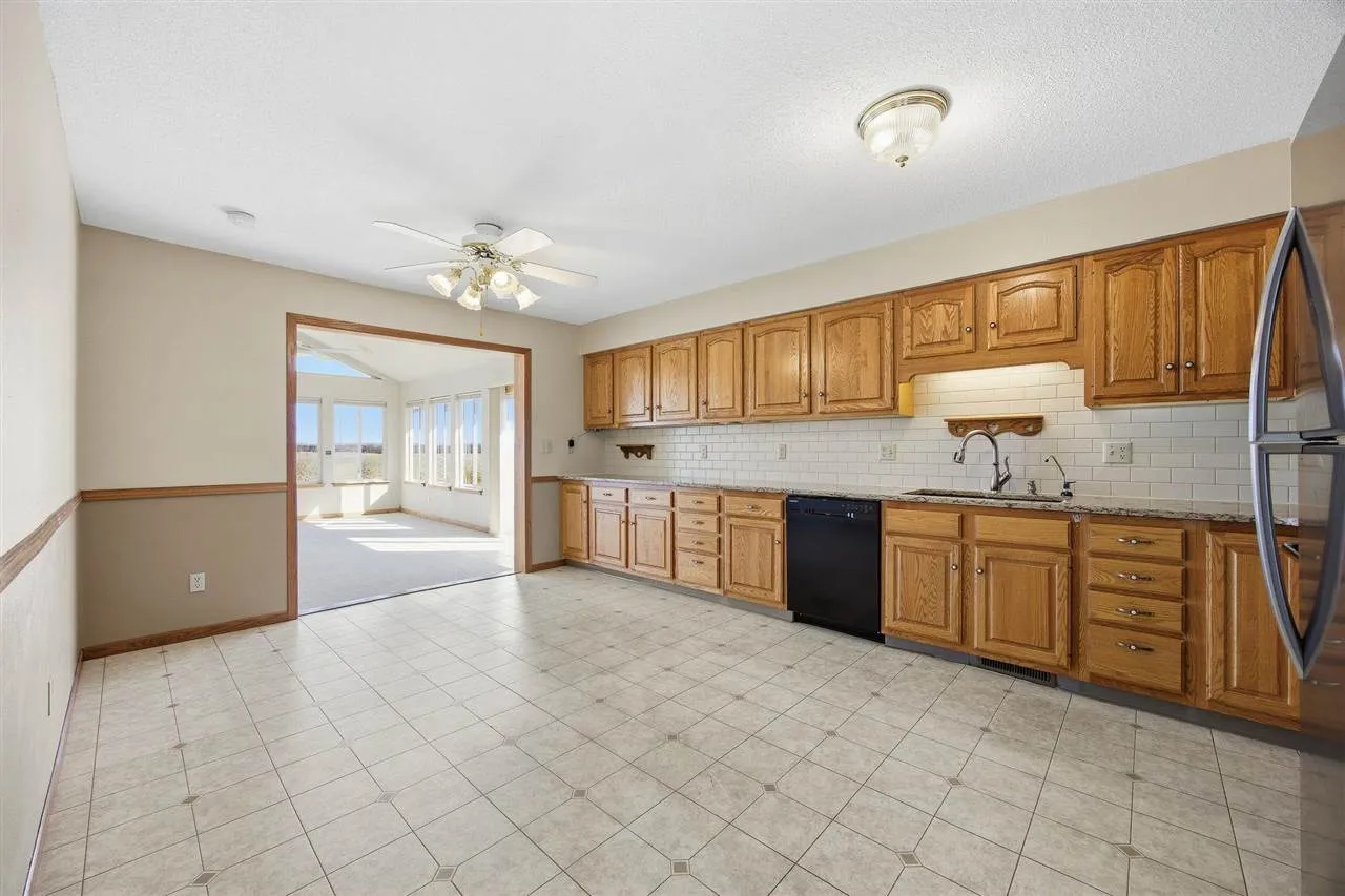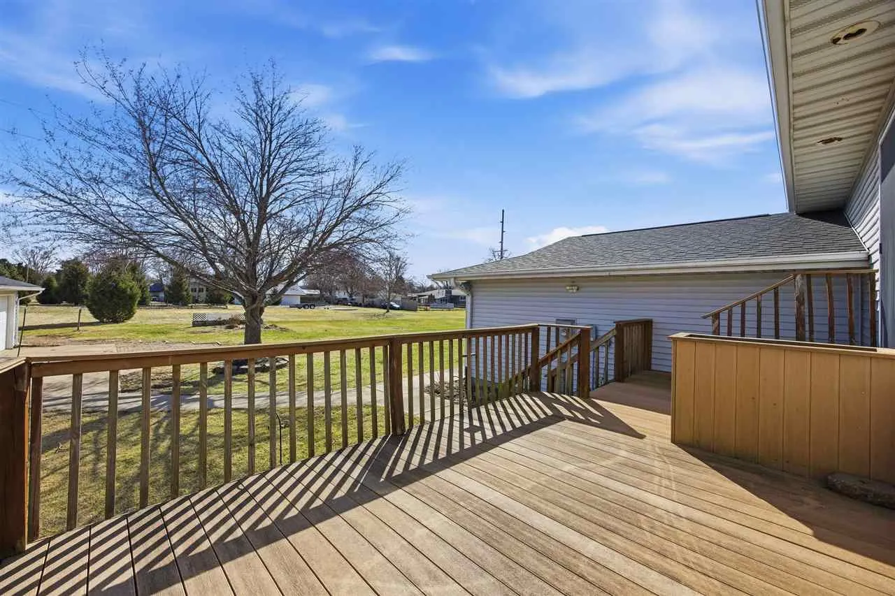 Welcome to a truly unique property offering space, comfort, and flexibility. This split entry home sits on a rare double lot, with the extra lot featuring a large outbuilding perfect for a two car garage, workshop, hobby space, or extra storage. The main level offers three bedrooms, an updated bathroom, a bright living room, and an updated kitchen with granite countertops and subway tile backsplash. A spacious bonus room steals the show with vaulted ceilings, skylights, a gas fireplace, and walls of windows overlooking a peaceful field and rolling hillside views. Step outside to a wrap around composite deck with built in seating and planters, ideal for relaxing or entertaining. The lower level includes a large rec room, an additional bedroom and bathroom, laundry area, and plenty of storage. The outbuilding is partially heated and cooled and includes a half bathroom for added convenience. Lovingly cared for and updated over the years, this property offers rare space and potential in an established and desirable part of town. Sale to include 5 Williams Circle (neighboring lot).