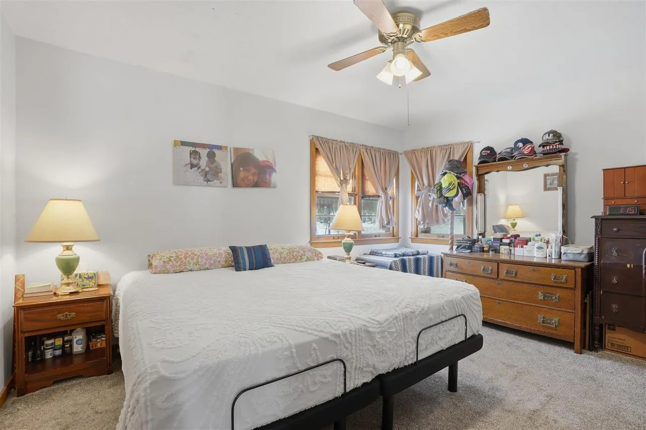 This well-maintained, single-level home offers a practical layout with inviting living spaces. Hardwood floors extend through the foyer, living room, and dining area, adding warmth and character. The kitchen has been updated over time and includes appliances for added convenience. A combined laundry and mudroom provides access to the attached garage and features pull-down attic stairs for additional storage. The property includes a deep backyard with space for outdoor enjoyment, along with two storage sheds. Exterior features include durable steel siding and a metal roof. The home offers two bedrooms and one full bathroom, providing a functional and efficient floor plan suited to a variety of needs.