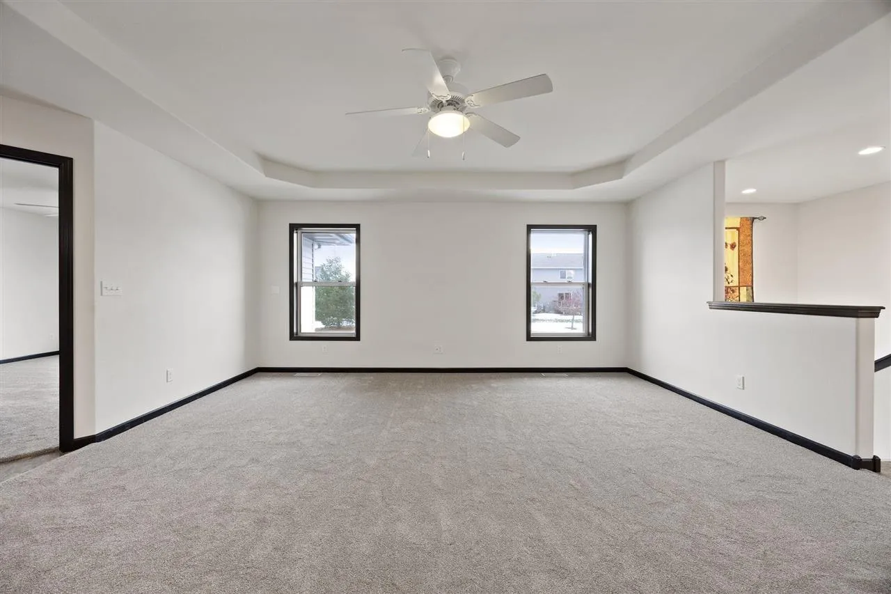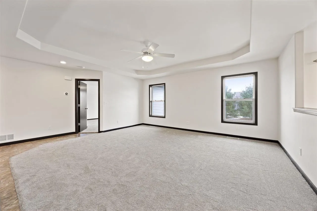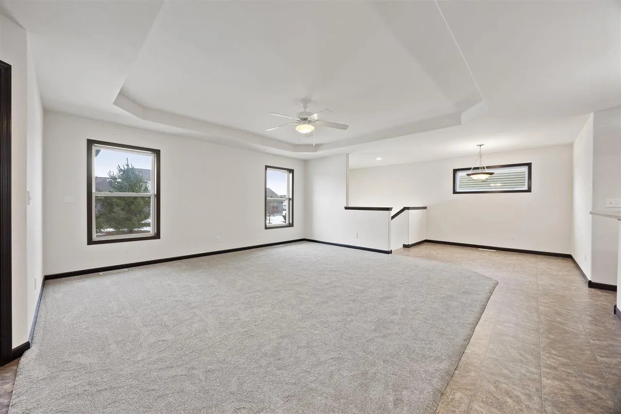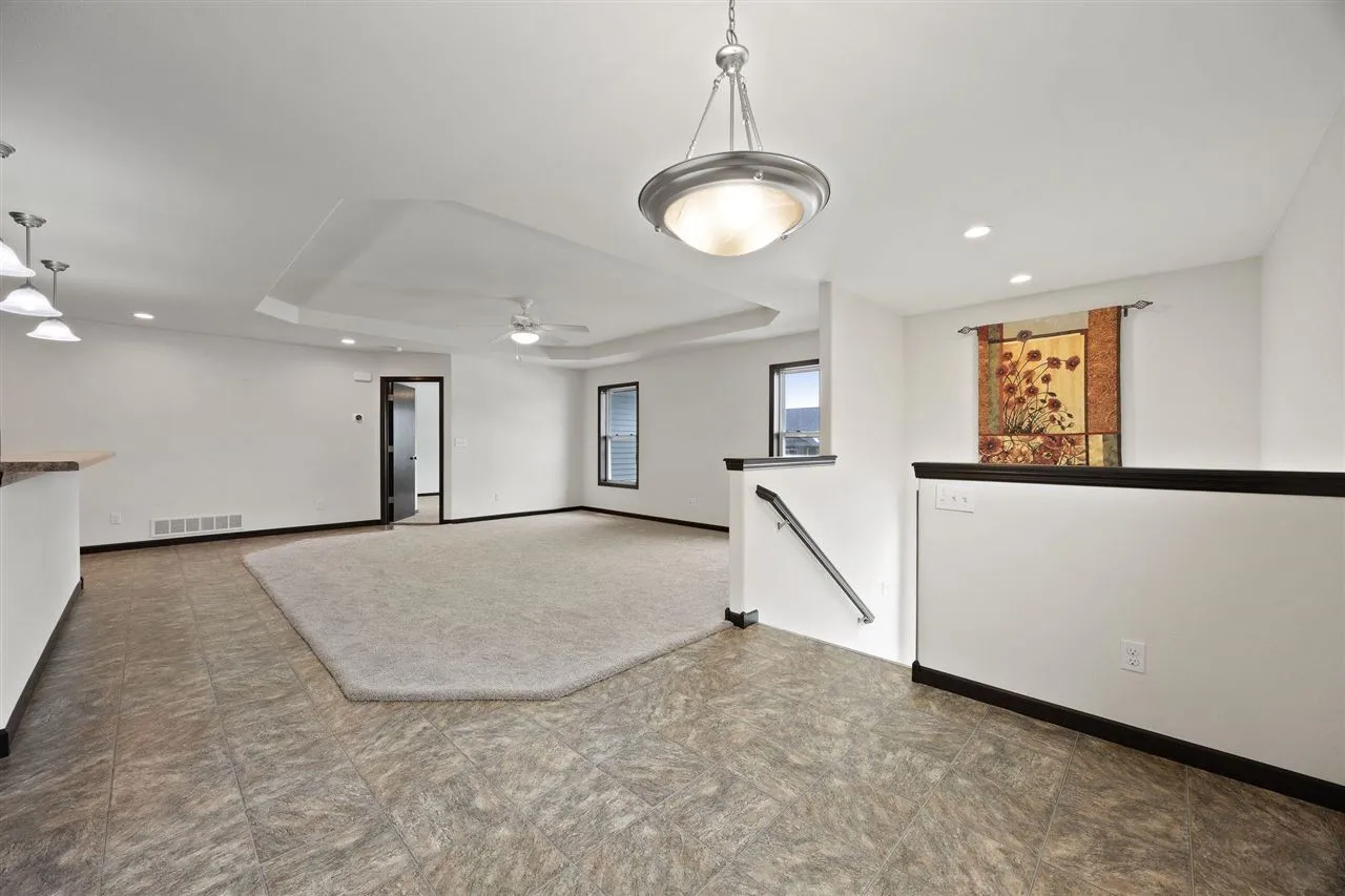 Well maintained zero lot ranch offering true low maintenance living in a convenient location. The open concept main level features tray ceilings, a spacious kitchen with ample cabinetry and counter space, and a bright living area ideal for everyday living and entertaining. The primary suite includes a private bath and generous closet space, with additional bedrooms providing flexibility for guests or a home office. The lower level offers excellent future potential with drywall, paint, and electrical already completed throughout, along with a finished bathroom, allowing the next owner to easily add flooring and ceilings to create additional living space. Attached two-stall garage and an HOA that covers lawn care/snow removal makes this home an ideal option for buyers seeking comfort, efficiency, and minimal upkeep.