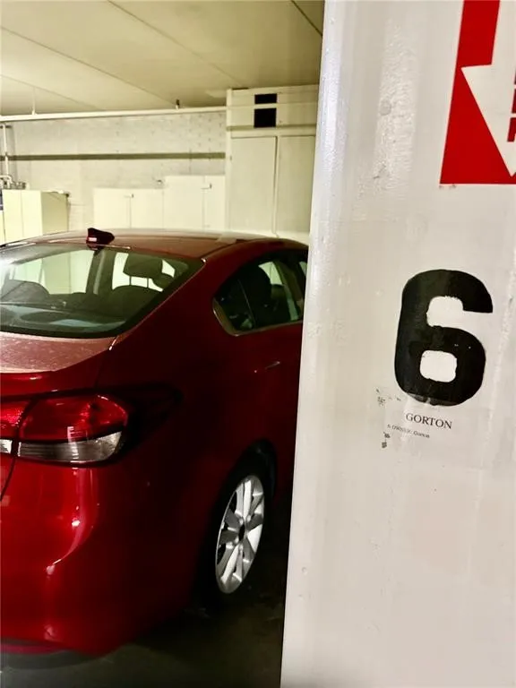 offers a step in shower and stackable washer dryer. The extra large primary bedroom has an ensuite bath with separate toilet/tub-shower area. There is a patio outside the living room slider overlooking a lush greenspace. Garage space #6 comes with this unit and storage cabinet in front of your car plus a locked storage cage in the garage area as well. Welcome home! There is a $200/move in/start up fee.