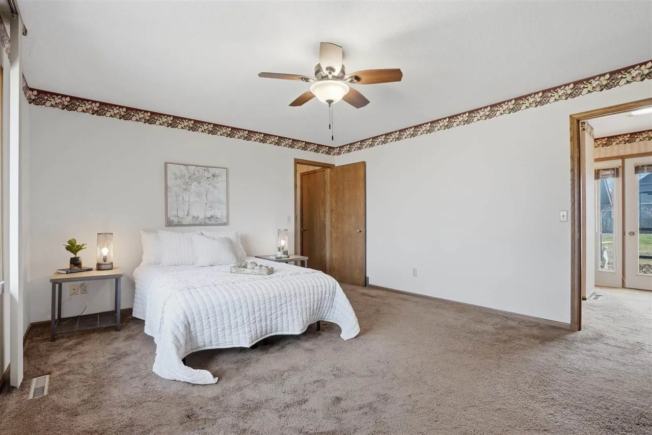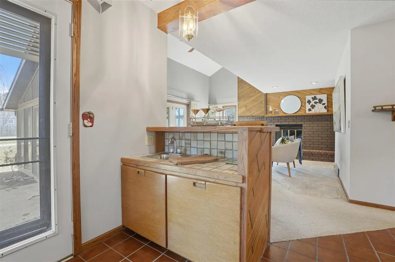 Step into this beautiful contemporary home featuring a bright, open layout and impressive vaulted ceilings that create a spacious and welcoming atmosphere. The main living room centers around a cozy fireplace, perfect for relaxing or entertaining.This 4-bedroom, 2½-bath home offers plenty of space for family and guests. The kitchen and dining area are combined for easy flow and feature abundant tile work, while the nearby wet bar adds a great touch for hosting gatherings. A loft area with comfortable carpeting provides additional living or office space.The master suite includes a private bath with both a bathtub and a tiled walk-in shower. Bedrooms and loft are carpeted for comfort, while durable tile accents the kitchen and main areas.Step outside to enjoy the screened-in patio, perfect for relaxing or entertaining while enjoying the outdoors without the bugs.Located in a quiet small-town neighborhood, this home sits on a generous 0.40-acre lot. The exterior features an attractive brick front and entryway, low-maintenance vinyl siding, and a convenient attached two-car garage.This property offers the perfect blend of modern design, comfort, and peaceful small-town living.
