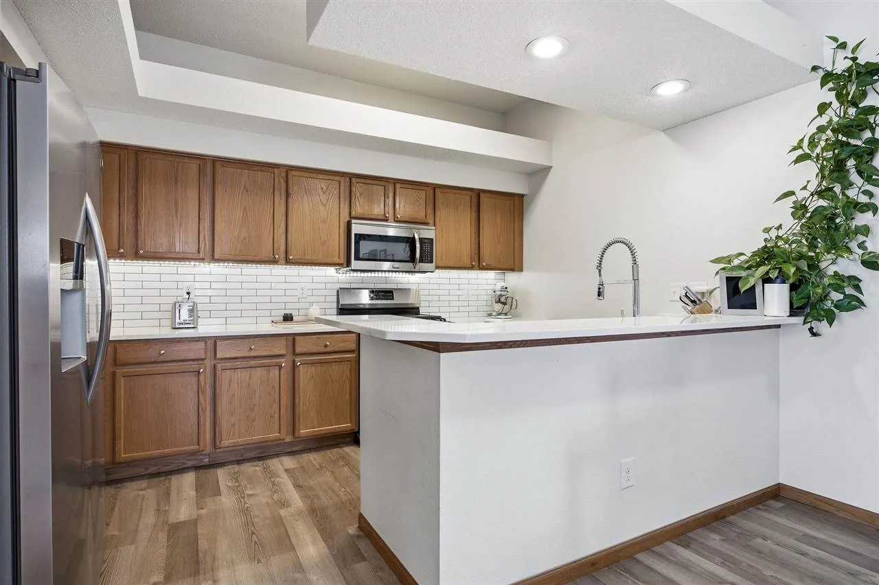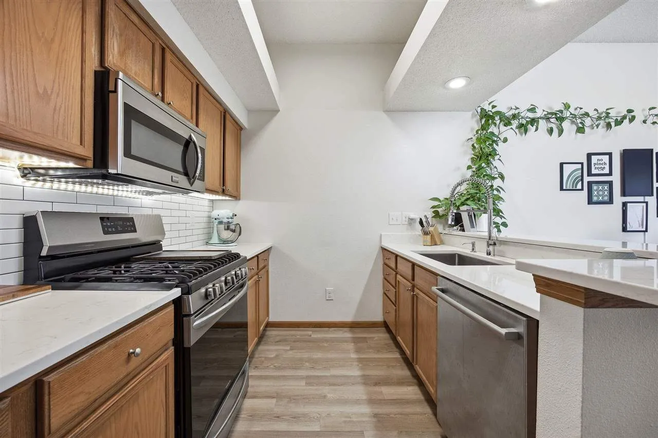 HOA increased from $3000/yr to $3600/yr Jan-2025. Step into comfort & convenience in this beautifully updated 3-bedroom, 3-bath townhome condo, perfectly designed for modern living. This home shines with stylish upgrades throughout, including updated luxury vinyl flooring, contemporary lighting, and sleek finishes. The main level welcomes you with an open-concept kitchen, dining, and living space—ideal for both relaxing and entertaining. The kitchen features a gas range, extensive quartz counters, ample cabinets, & beautiful subway tile backsplash. A gas fireplace anchors the living room, while full-length windows flood the space with natural light & provide access to a deck spanning the length of the home—perfect for morning coffee or unwinding. On the main level you will also find two spacious bedrooms, a full bathroom, and multiple deep storage closets. The primary suite is highlighted by vaulted ceilings and has an ensuite bath and walk-in closet. The walk-out lower level offers a third bedroom, full bath, dedicated laundry room, and family room from which one can step outside to enjoy a private patio. Additional highlights include a two-car garage, new AC installed in 2025, and a prime location on the bus route with easy access to UI Hospitals, dental and law schools, and downtown Iowa City—making commuting a breeze.