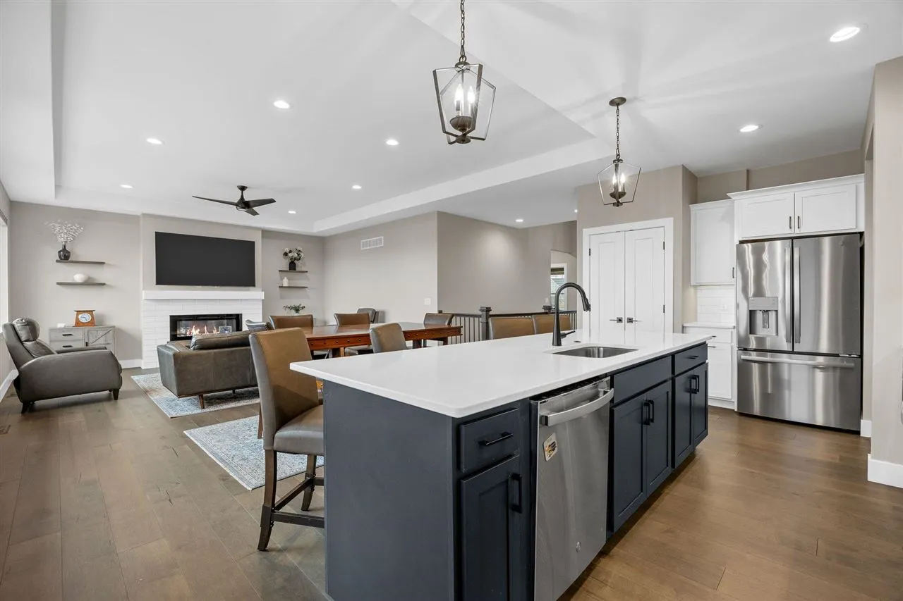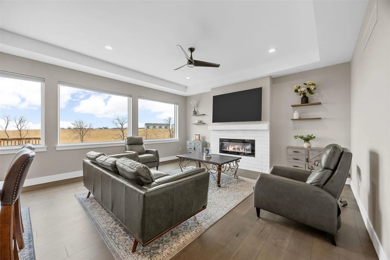 Welcome home to this beautifully designed 5-bedroom, 3-bathroom ranch that perfectly blends comfort, space, and scenic views. From the moment you step inside, you’ll love the open-concept layout connecting the living room, dining area, and kitchen, making it ideal for everyday living and entertaining. The main level features a spacious primary suite with a private bath and walk-in closet, offering a peaceful retreat, while a cozy fireplace anchors the living room. The walkout lower level adds even more living space with a large family room, dedicated exercise room, and a stylish wet bar perfect for hosting. Step outside to enjoy the serene countryside setting from the deck, patio, or screened porch, while large windows throughout the home fill the space with natural light and showcase stunning sunset views. Complete with a 3-car attached garage and a large fenced-in yard, this home truly offers the perfect combination of space, comfort, and beautiful surroundings.