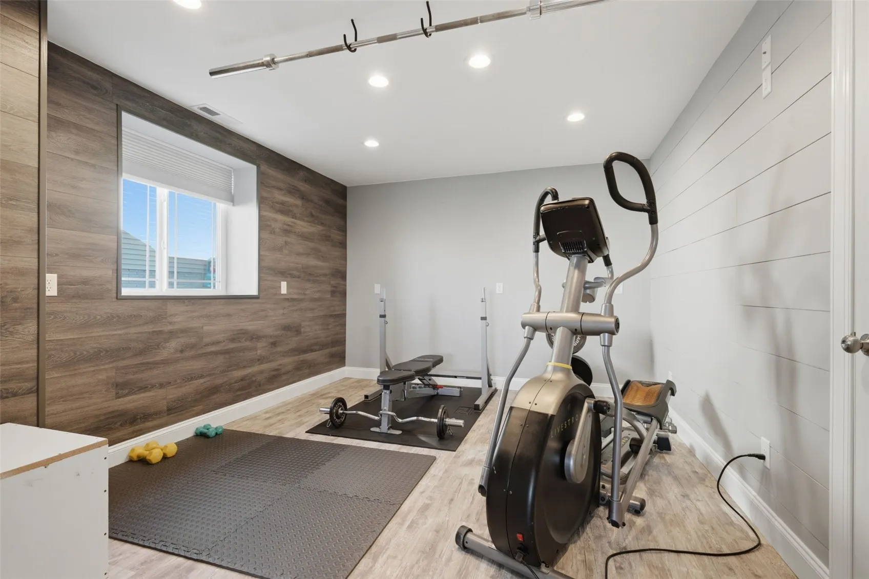 Downstairs, the lower level was built to entertain. Oversized daylight windows flood the space with light, while LVP flooring and a large family room anchored by a distinctive pallet-board gas fireplace set a warm, welcoming tone. The wet bar, complete with sink, dishwasher, and spot for a refrigerator, means your guests never have to go upstairs. A fourth bedroom, full bath, and a flexible bonus room ready for a home office, gym, or fifth bedroom complete a lower level that punches well above its weight.