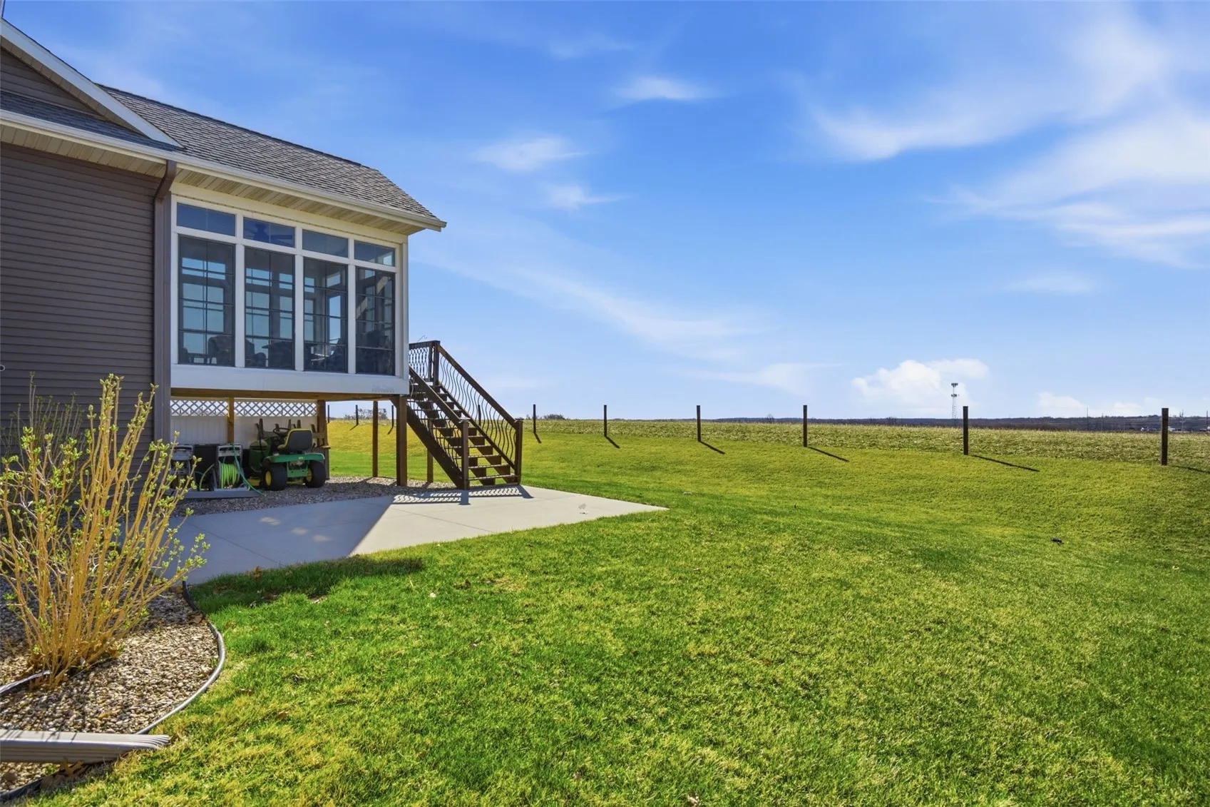 Step through the sliding door and into the 12×12 three-season porch, converted in October 2023, where a wide-open backyard view with no neighbors behind creates the kind of serene outdoor living space that simply can’t be replicated. Bonus storage underneath the porch keeps the exterior just as organized as the interior.
