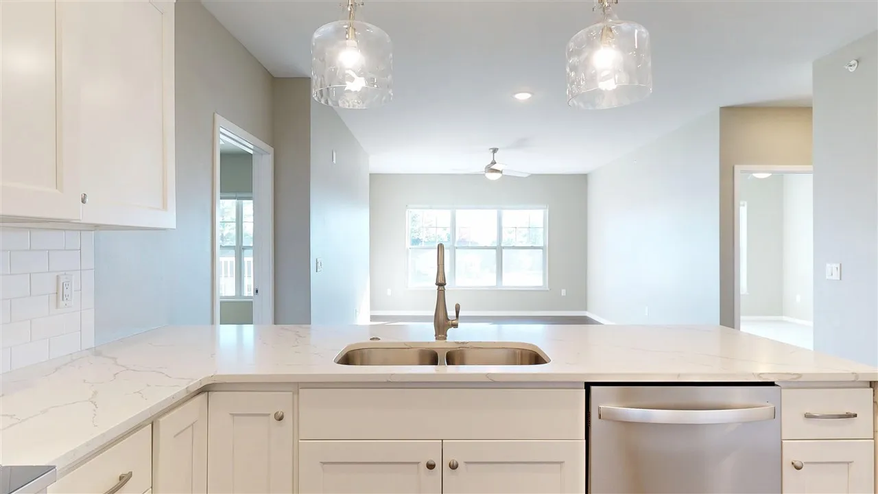 A life of elegant simplicity awaits the new owner of this delightful 2 bedroom/2 bath condo on Iowa City’s east side. Bathed in natural light, this unit is efficiently designed with two bedrooms and associated bathrooms bisected by the open concept kitchen, dining room and living room spaces. The kitchen is highlighted by the white quartz countertops, white cabinetry and like-new stainless steel appliances. Opposite the kitchen, you’ll find access to a private balcony off of the living room area. To one side you will find the primary bedroom with en-suite bathroom and walk-in closet, and to the other is a second bedroom and another full bathroom. A smartly situated laundry room doubles as a coat closet & pantry near the front door & rounds out the private living space. The building itself is impressive with nicely appointed community spaces including a sitting lounge and exercise room. Unit has a extra long parking space in the underground garage allowing for some garage storage.