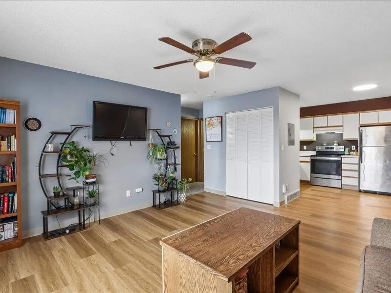 Enjoy easy living in this attractive 2-bedroom, 1-bath condo offering stylish updates and move-in condition. New LVP flooring adds a fresh, modern touch to the living room and kitchen. The spacious kitchen features stainless steel appliances and a pantry for excellent storage, while the primary bedroom includes a walk-in closet. Washer and dryer can remain, making this home even more convenient. Exterior updates include new siding, roof, and carports, along with an additional storage area. This is a fantastic opportunity to own an updated condo in a well-kept community where one owner may own up to 2 properties, and most units are owner-occupied. Reserved items are all decorative shelves, living room curtains, hooks, and the microwave. Please allow 24 hours’ notice to show. Tenant will be moving out at the end of June. HOA fees are $180/month with ACH or $185/month without ACH.