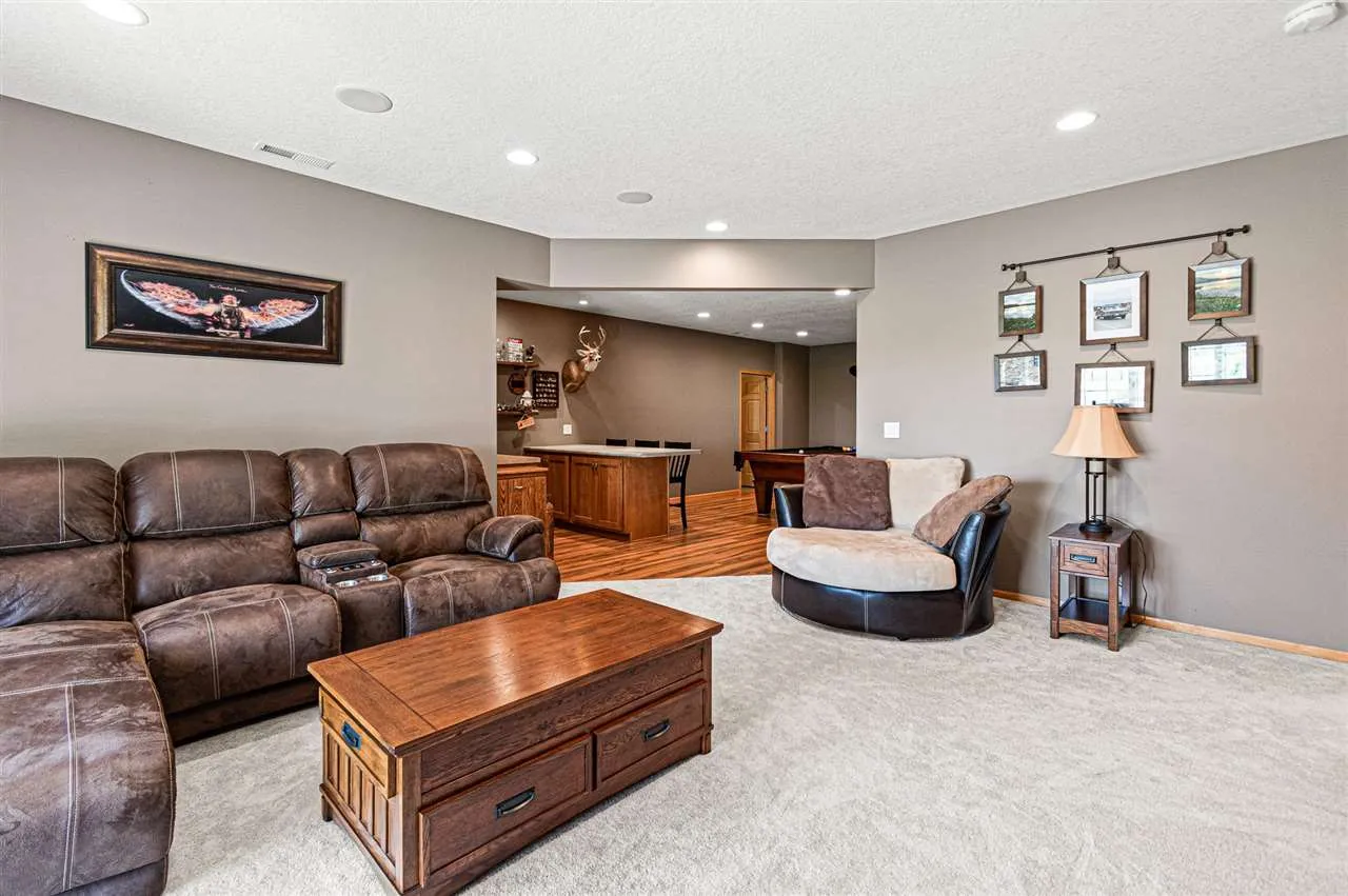 Welcome Home to this masterfully updated, 4 bedroom 3.5 bathroom home, containing all the amenities for a relaxed and easy lifestyle. Main floor living is attained with the primary en suite, kitchen with quartz countertops, upgraded appliances, and new sink and fixtures, and the family room with vaulted ceilings. Two bedrooms, a Jack and Jill bathroom, and extra play/living space adorn the upper level. The lower level is an entertainer’s oasis, that includes yet another bedroom, bathroom, office space,excess storage, PLUS walks out to an oversized patio with a pergola and Breo smokeless fire pit. The attached oversized 3 car garage includes a bonus room to be used for your imagination. The geothermal system has 3 zones, which includes that bonus room..