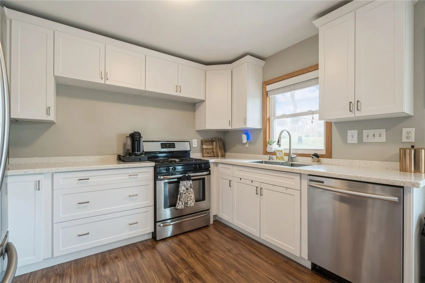 This one is DEFINITELY NOT your average split foyer!!! Shows like a model home with STUNNING all new kitchen with solid surface countertops, top-of-the-line cabinetry with easy close drawers and pantry, all stainless steel appliances that stay with the house and more! Incredible custom built-in entertainment center in living room. Nearly all fresh paint and brand new carpeting. New STEEL roof, newer vinyl siding and garage door, replacement windows and 1 year old central air unit! Fully fenced backyard with stamped concrete patio ideal for children, pets or entertaining! Finished lower level rec-room could double as a 4th bedroom, and attached garage has a unique, large storage space perfect for your mowers, lawn equipment, bikes etc. Truly a gorgeous home that is in move-in condition and ready for you to fall in love! Seller requests 24 hour response time for any and all offers