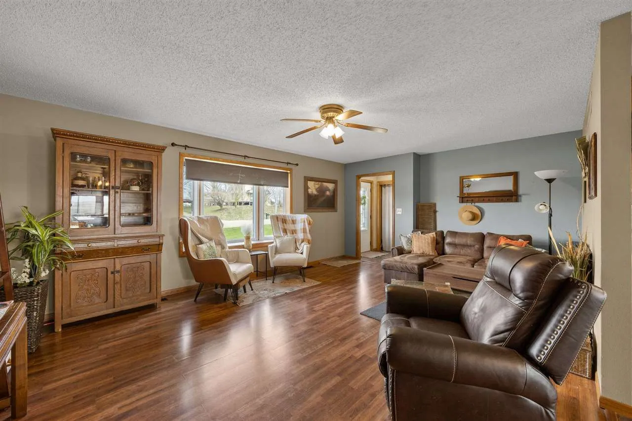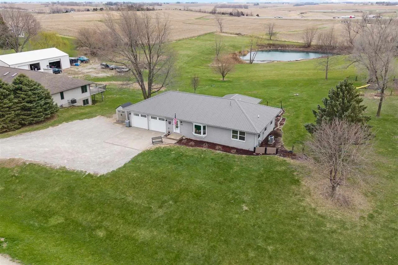 Nearly an acre with pond views! This ranch home with a walk out lower level has plenty of space inside and out. There are 4 bedrooms (one non-conforming) and 2 full bathrooms, a screened in porch and a beautiful patio with fire pit. The lower level is plumbed for a full kitchen (or amazing wet bar) and wait until you see the garage space in this home! Everything has been well maintained or updated so you can move right in and enjoy small town living only 20 minutes away from Iowa City. Ask for a list of additions and updates because there are too many to list.