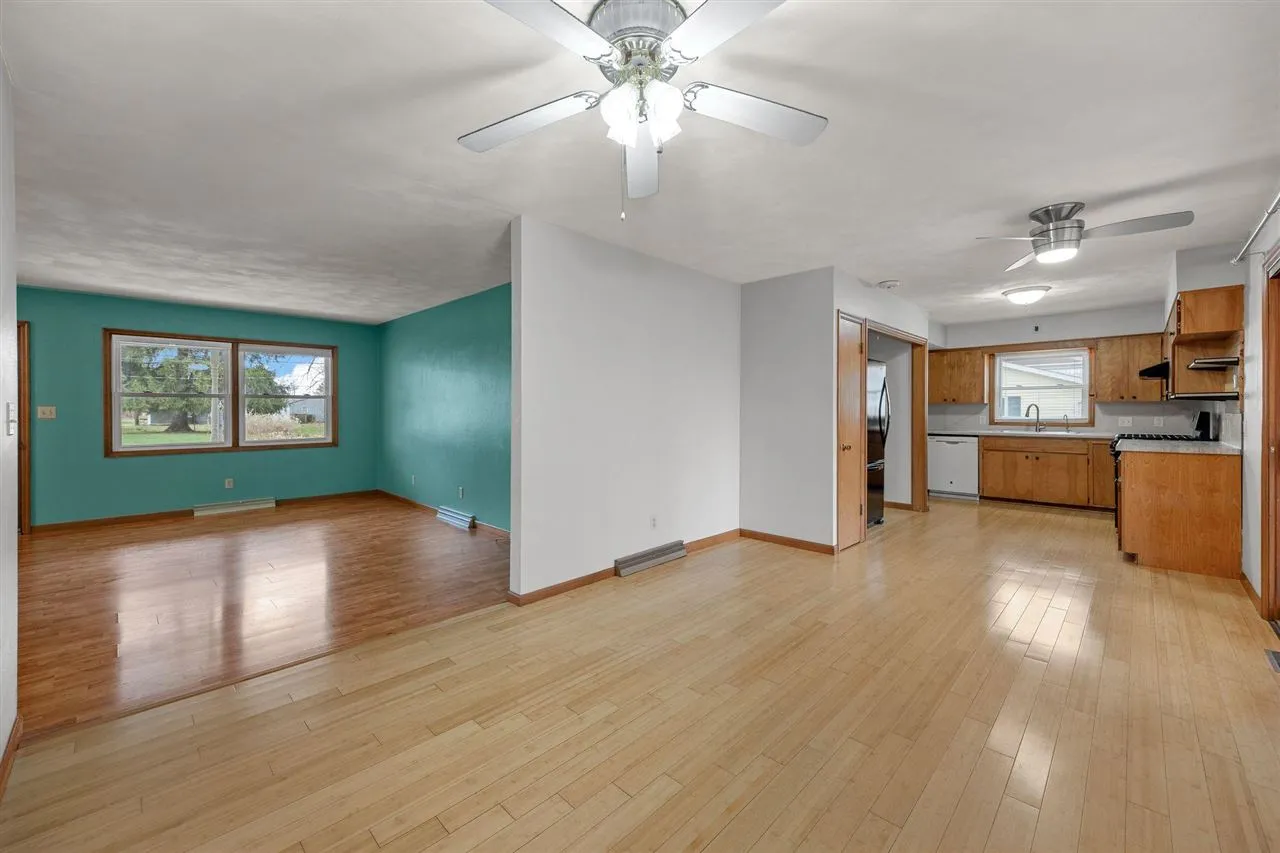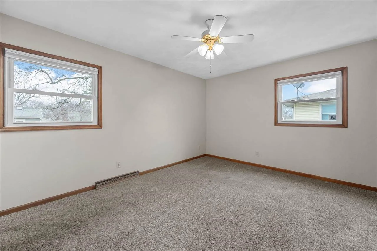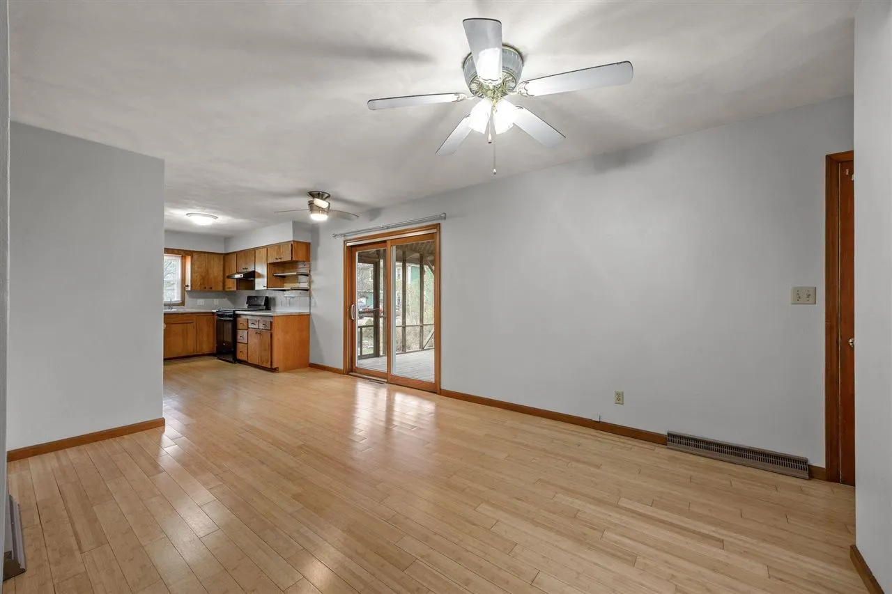Spacious ranch home with nearly $22,000 in owner updates since 2021. Large living room & cozy den/sitting area with a gas fireplace & new built-in bookshelves. Kitchen has a new ceiling fan, added shelving & a new stove with a connection that was converted to gas. Sliding doors lead to a lovely screen porch overlooking the backyard. Primary bedroom has an ensuite bath & newly installed window blinds. Primary bath has new vanity, light, exhaust fan & new tile. Owners installed a new ceiling fan in the 2nd bedroom, and there is a 2nd full bath on the main floor with new faucets, new light & new exhaust fan. Extensive electrical updates have been done, including a new fuse box, rewiring of the basement, new basement lighting, and new GFI’s in kitchen. Lower level has a supersized rec room and a sizeable adjacent room perfect for a workshop, crafting room or extra storage. Per recent appraisal, 491 sq ft in the lower level is partially finished. Lighting was added to the laundry & storage areas, a whole home humidifier installed & washer/dryer were re-located. Exterior improvements include replacement of the driveway & sidewalk, 2 new motion sensor lights, a new screen door & 3 new outdoor spigots. Radon mitigation system installed. *Some photos are virtually staged to mimic what the home looked like when sellers lived there.