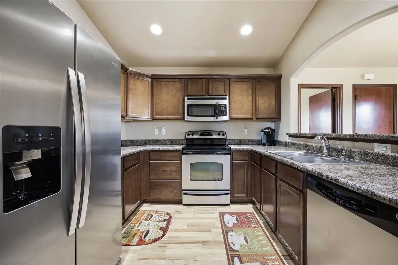 Welcome home to this beautifully maintained zero lot in the heart of North Liberty, just a short walk to the charming Liberty Centre area! This 3-bedroom, 3-bath home offers a comfortable, functional layout designed for everyday living. The main level features a living room with a vaulted ceiling and cozy gas fireplace, a spacious dining area, and a kitchen with a breakfast bar and passthrough detail, stainless steel appliances, and a pantry. You’ll also find a primary suite with a walk-in closet and private bath with dual granite vanity, along with a second bedroom and full bath. The walkout lower level expands your living space with a large family room, third bedroom, full bath, and laundry area. Step outside to enjoy the flat, fenced backyard, perfect for relaxing or entertaining. Plus a new roof was installed in 2021 & a new water heater in 2020! Meticulously cared for and truly move-in ready!