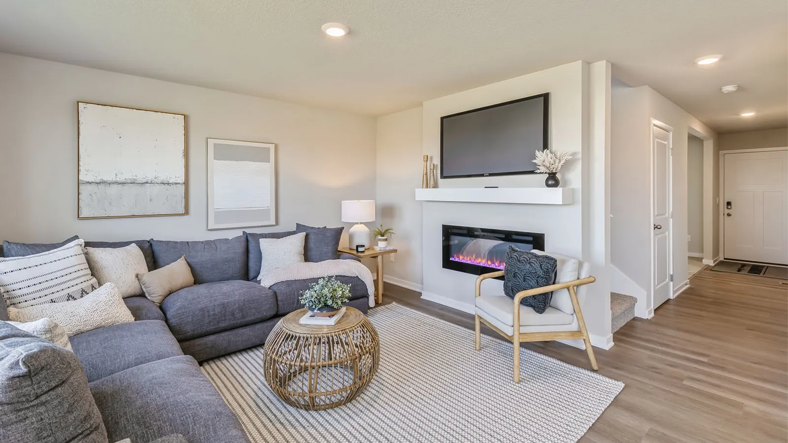 Welcome to the Bellhaven in Edgewood Village – a two-story home with 4 bedrooms, 2.5 baths, and 2,053 sq. ft of living space for everyday living and entertaining. Step inside to find a versatile front flex room—ideal for a home office, playroom, or formal dining. A hallway leads to a guest half bath and an open-concept living space filled with natural light, highlighted by an electric fireplace and large windows. The kitchen boasts a large island, white cabinetry, stainless steel appliances, a walk-in pantry, and connects seamlessly to the dining area. Upstairs, you’ll find a central laundry room, three spacious secondary bedrooms, and a full bath with double vanities. The private primary suite includes a walk-in shower, dual sinks, private water closet, and two walk-in closets for ultimate convenience. This home includes smart features and a full unfinished basement. Visit today for a personal tour! Ask about builder incentives with preferred lender. Photos similar to.