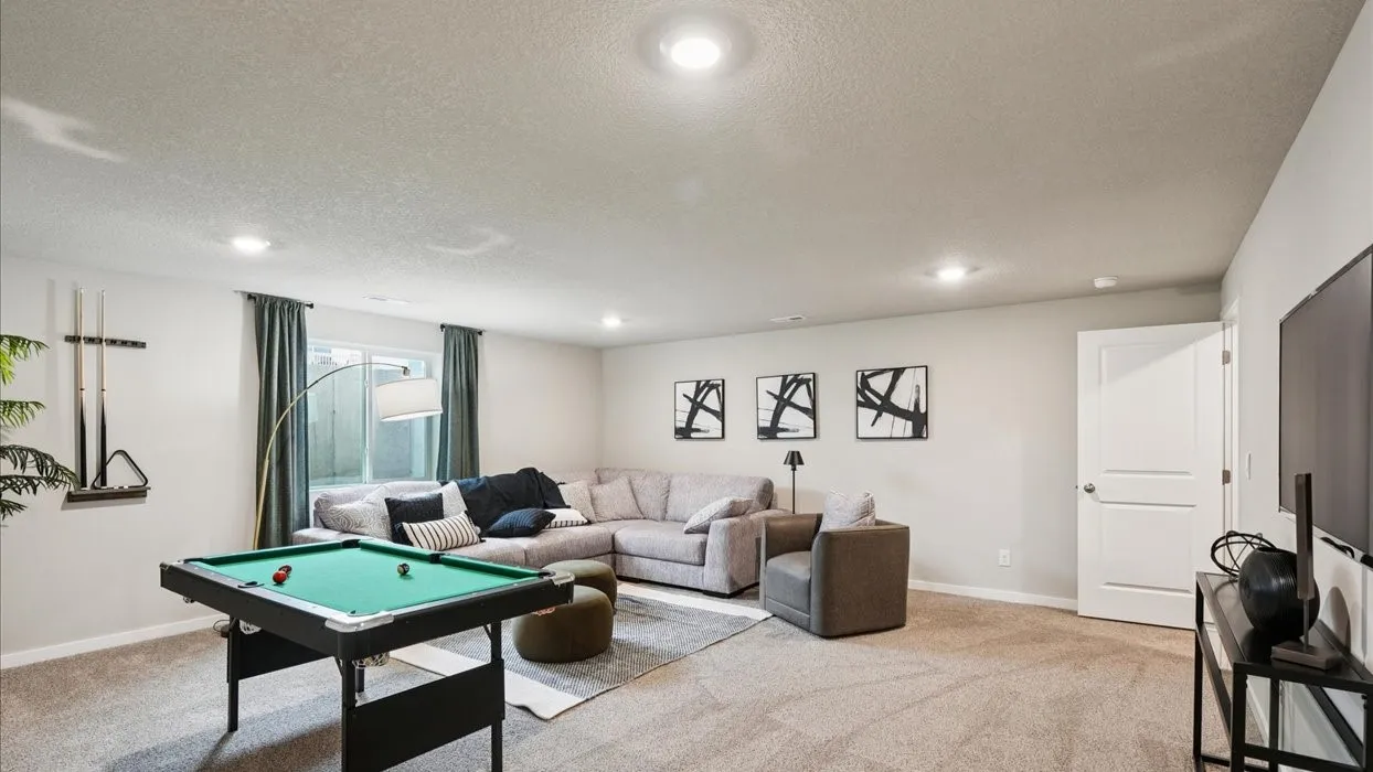 Welcome to the Hamilton in Forevergreen Heights – a stunning ranch-style home featuring 2,462 sq. ft. of finished living space with 5 bedrooms and 3 bathrooms, including a beautifully finished basement. Upon entry, soaring 9-foot ceilings and a bright, airy foyer lead past two spacious bedrooms and a full bathroom—ideal for guests or a home office. The open-concept kitchen is the heart of the home, showcasing (white) cabinetry, subway tile backsplash, stainless steel appliances, and a large island perfect for entertaining. The adjoining great room offers large windows and an electric fireplace, creating a cozy, light-filled space. The private primary suite includes a dual-sink vanity, walk-in shower with ceramic tile, and a generous walk-in closet. Downstairs, enjoy a large family room, the fourth & fifth bedrooms, and the third full bath. Call us for a personal tour! Ask about builder incentives with preferred lender. Photos similar to.