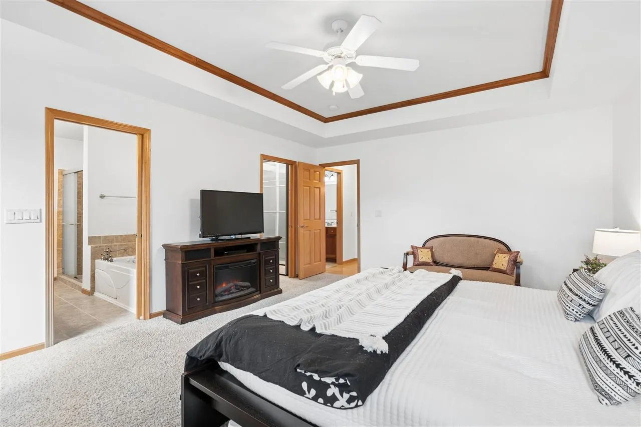 Beautiful walkout ranch in Pine Hill Estates—quality built by Frantz and lovingly maintained by one family. The roomy 1,664 sq ft main level features hardwood floors, thoughtful storage, and solid wood, tile, and granite finishes throughout. The private bedroom wing includes a spacious primary en-suite plus two additional bedrooms and a full bath, while the open-concept living area is ideal for entertaining with a cozy gas fireplace and seamless flow to the covered porch. Enjoy outdoor living with a gas line ready for grilling on the deck, plus steps leading down to a fenced-in yard. The lower level expands your space with a 4th bedroom, 3rd full bath, and a large 5th non-conforming bonus room with built-in shelving. You’ll also love the second fireplace in the family room, wet bar, and dedicated game area. Located near schools, trails, commuting routes, and the Kirkwood Youth Sports Complex. Schedule your private showing today!