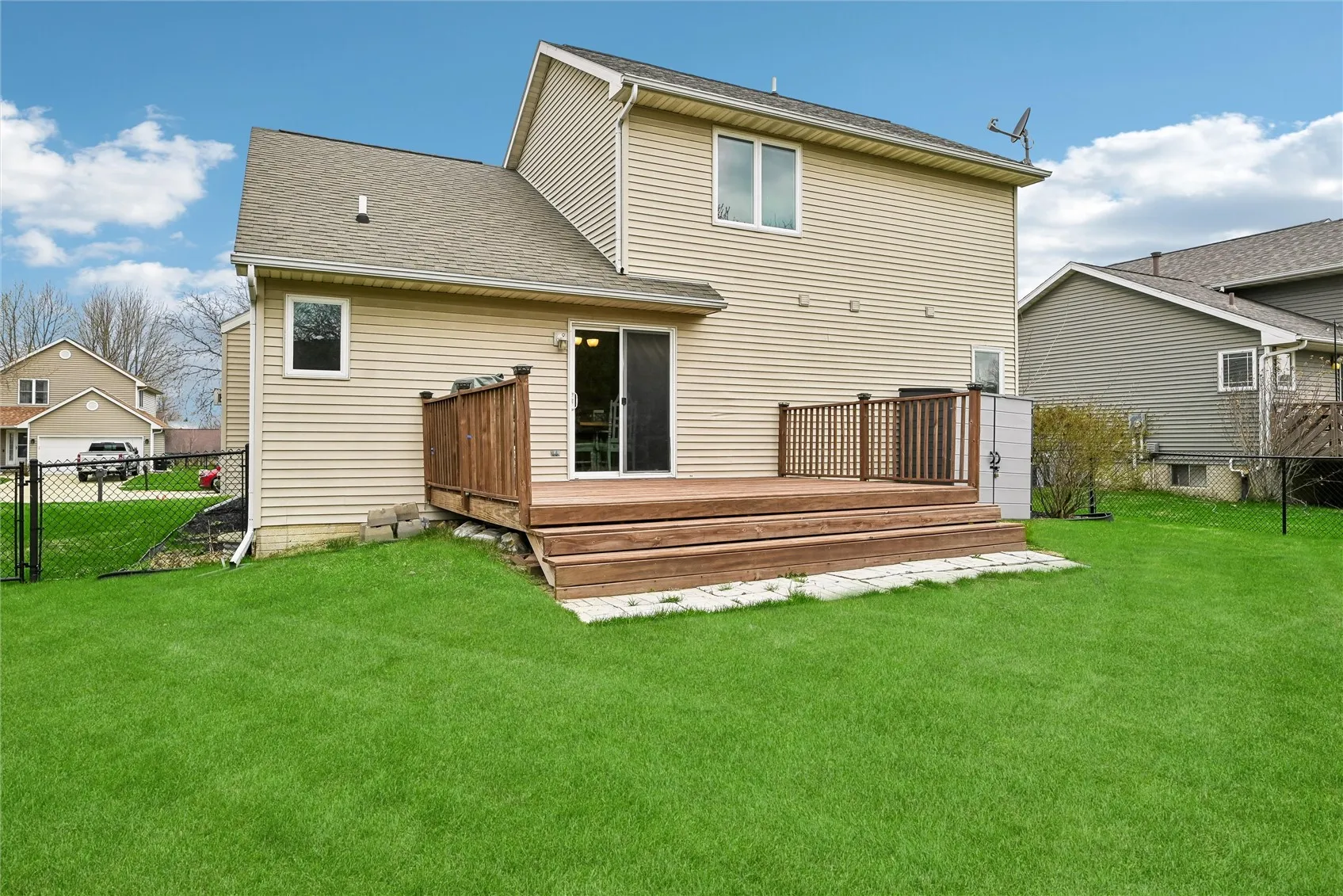 Here is your chance to own a two story home with a first floor bedroom – a rare find! How nice to have the primary bedroom and bathroom on the main floor with no need to do stairs. You will love the bright eat in kitchen and how the new deck is right off from it. The fully fenced flat backyard with a lighted fire pit area is perfect for entertaining. You will love the vaulted ceilings of the home as well as the cozy gas fireplace in the living room. There is a handy drop zone coming in from the two-stall garage. There is plumbing behind the drop zone so if you wanted to have the clothes washer and dryer on the main floor you have that option. There is a half bathroom on the main floor that is perfect for guests. Upstairs you will find two additional bedrooms and a second full bathroom. The lower level features a large family room as well as the clothes washer and dryer and an plenty of room for storage. Open 2- 4 p.m. Sunday, April 12.