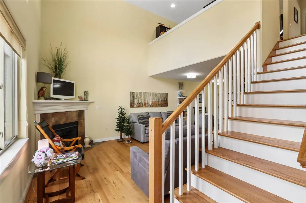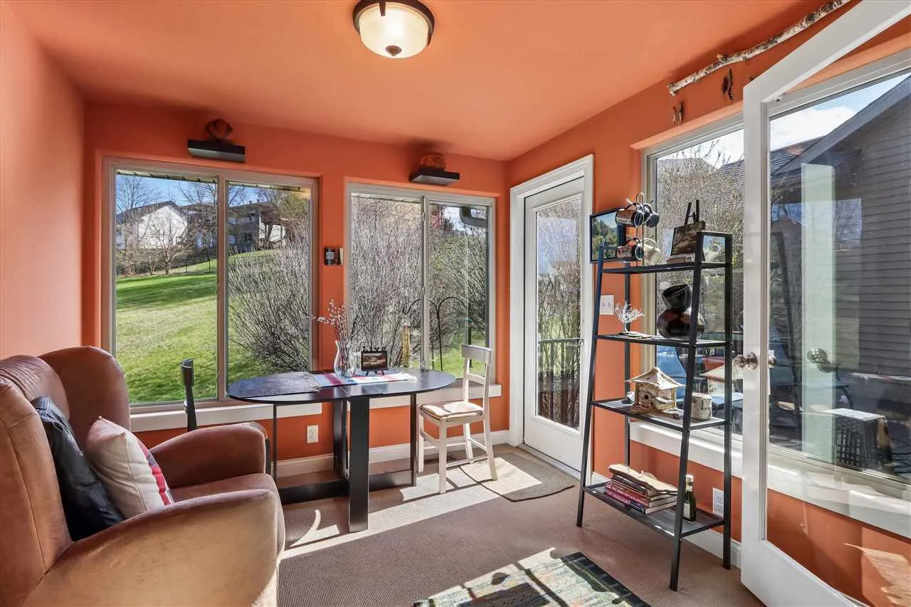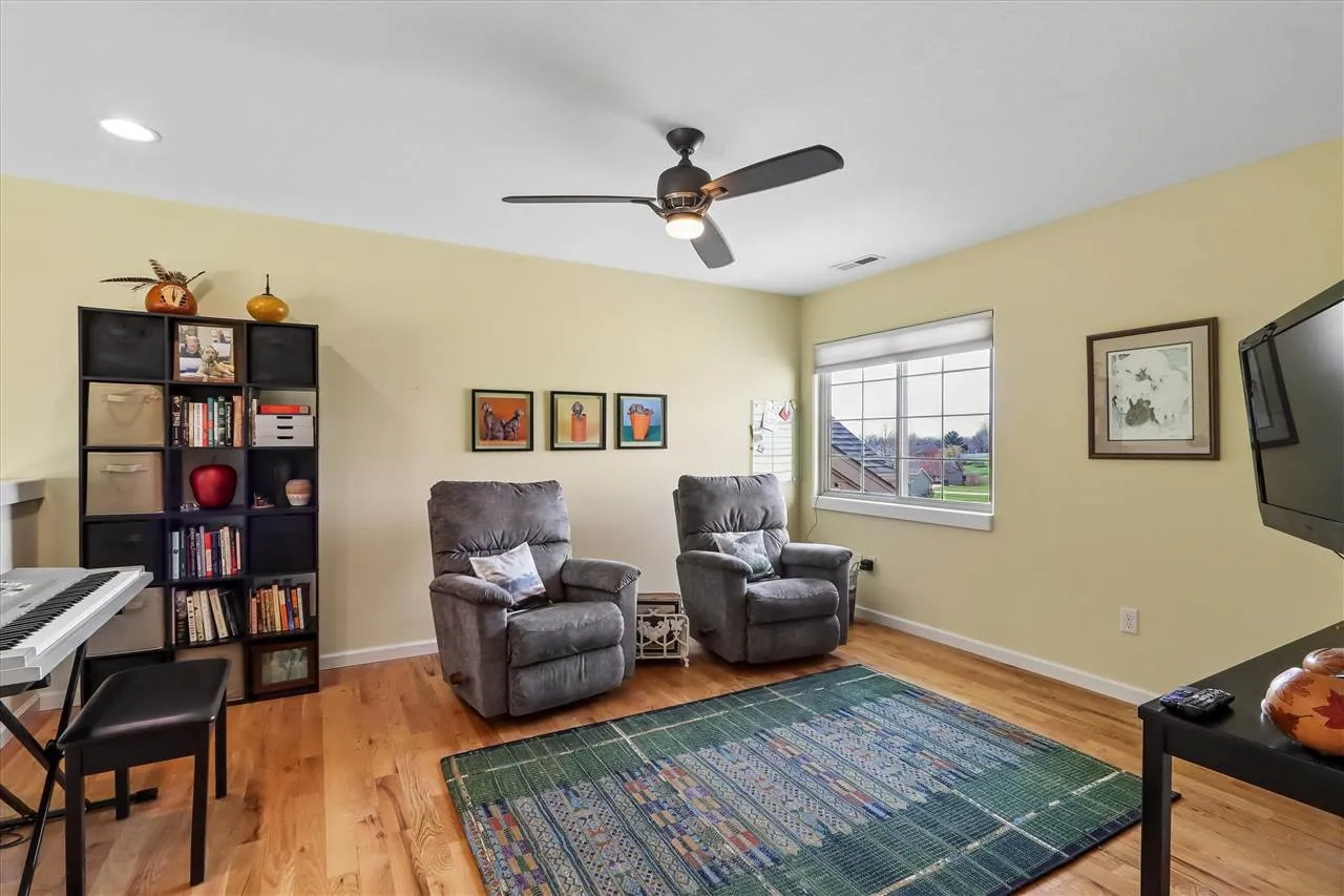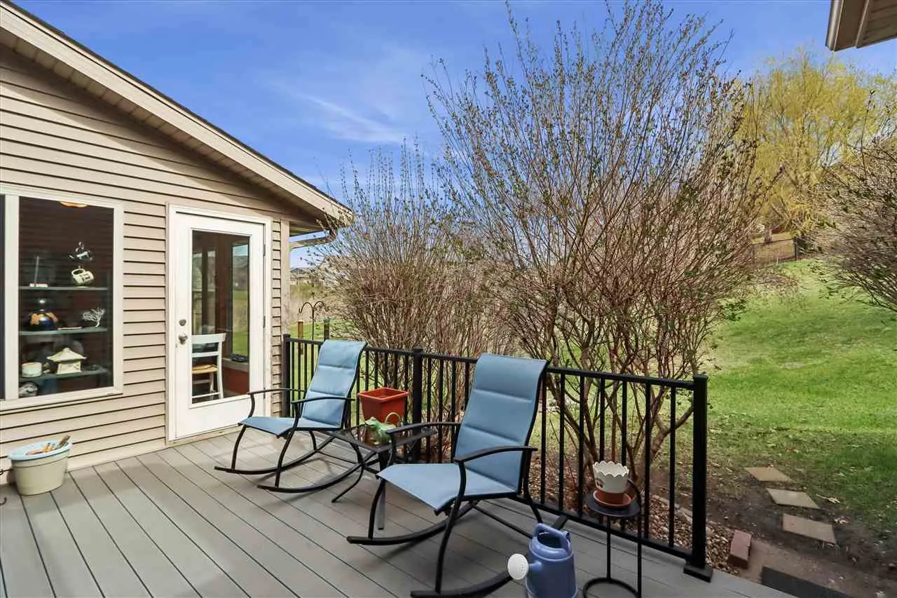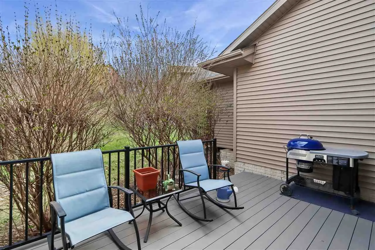 Light, Bright, Open and Upgraded unique custom one owner townhome situated on a quiet side street in the growing community of Tiffin. Gorgeous hardwood floors throughout the main level and upstairs loft. Relax in the living room with the cozy gas fireplace or grab a cup of coffee on the inviting 4 seasons porch overlooking the green space, Lilac bushes and large flowering crab tree + a good sized deck with maintenance free Trex Decking. Upper level features the primary suite with a large custom walk in closet, generous bathroom with custom deep Bain Ultra tub, separate shower, double sinks, custom lights, tile floors and Stackable washer/dryer + loft that could be converted to another bedroom. The Lower level features a cozy family room, bedroom and full bath + storage under the stairs. This beautiful and well maintained home is in an excellent location, just minutes to shopping, restaurants, Interstates etc. Rough in for central vac. Rough in for LL wet bar. Recent updates: Jenn Aire Refrigerator 2023, Frigidaire Stove and Microwave 2024, Water Softener 2024, Water Heater 2024, Roof 2025, Storm door 2021. Trex Decking 2023. 45 day closing ideal/negotiable.