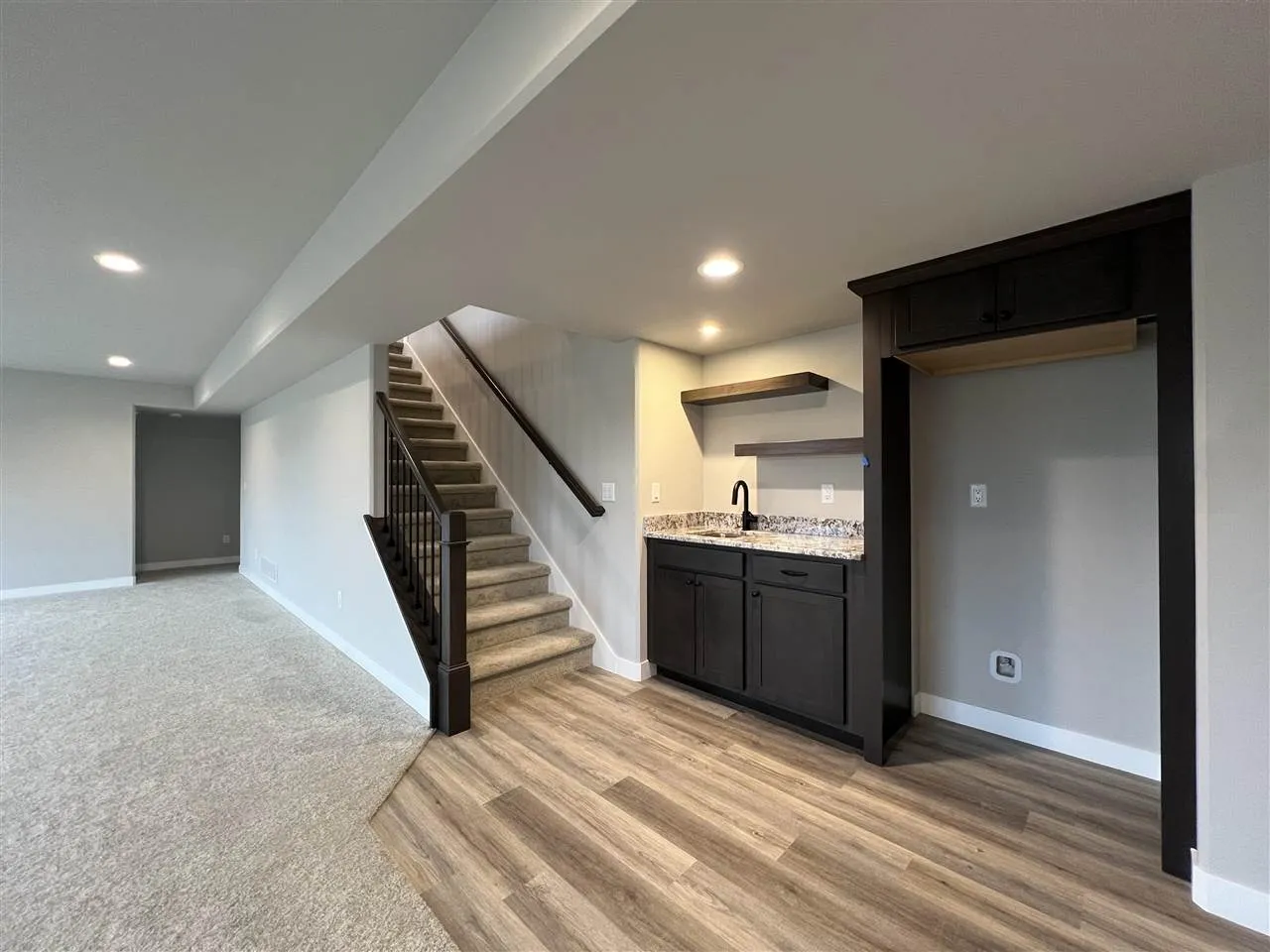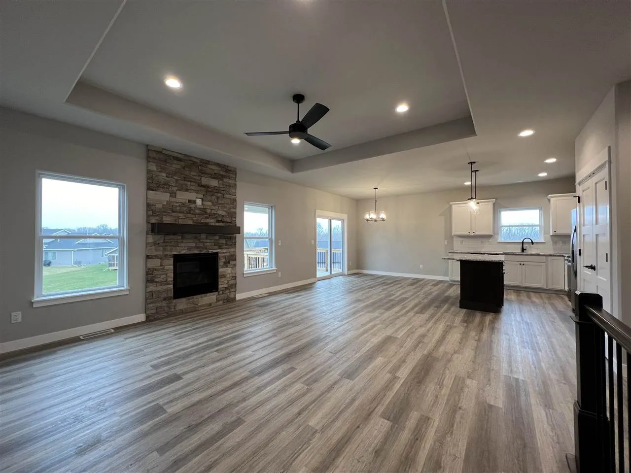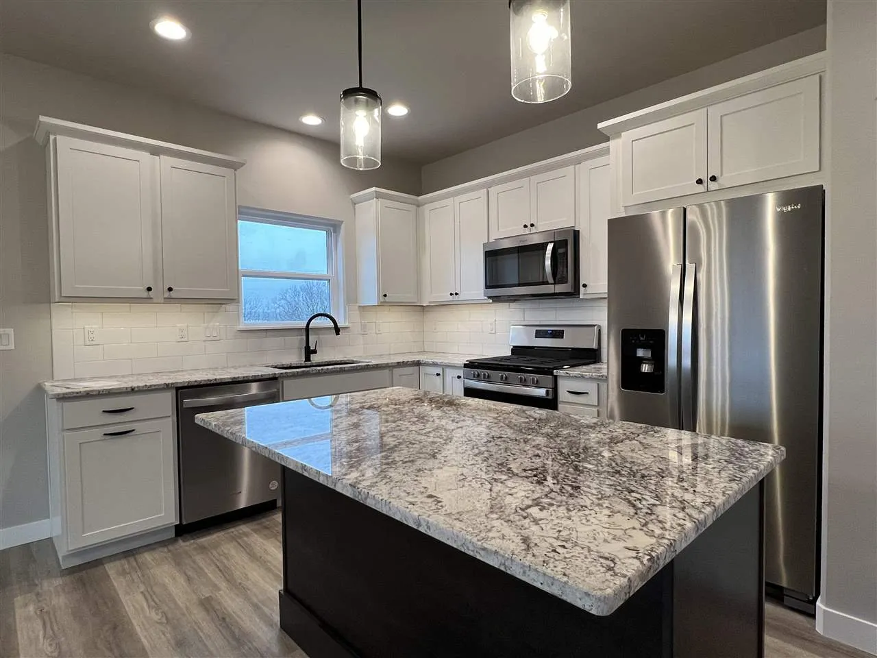 INTERIOR PHOTOS OF A SIMILAR PROPERTY. DESIGN & FINISHES WILL VARY. This welcoming floor plan features a kitchen with an island, hard surface counter tops, tile backslash, stainless steel appliances with gas range and microwave IS VENTED TO THE EXTERIOR. Pre-stained dark trim and white doors throughout. Covered deck off of the dining area with steps down to the back yard. Trey ceiling in the great room with a gas fireplace. Primary suite has LVP flooring, walk-in closet and a private bathroom with tile shower and double sinks. Built-in drop zone in mud/laundry room. Finished lower level has a huge family room with a snack bar with sink, bedrooms 4 and 5, and bathroom.