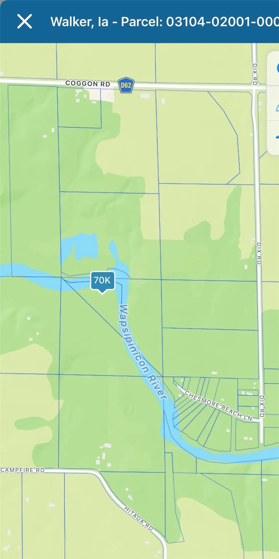 6 acres of woods on the Wapsipinicon. Property is land locked and priced accordingly. No direct road access. Can be accessed by water.