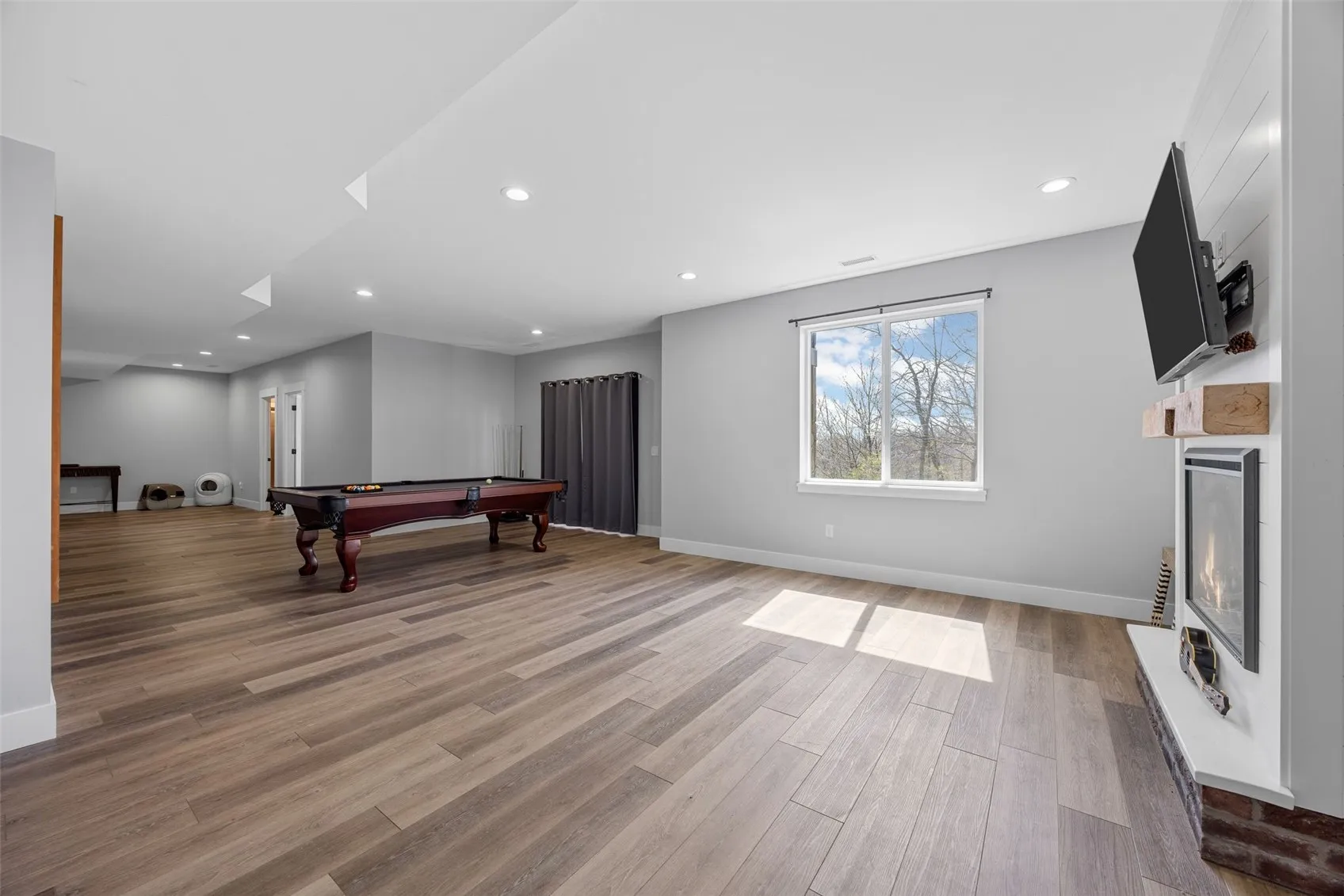 Tucked at the end of a quiet cul-de-sac on nearly half an acre, this modern farmhouse offers a lifestyle of peace, privacy, and effortless living. Surrounded by wooded views, mornings feel calm and evenings are made for relaxing on the screened porch or gathering around the firepit. Inside, the open layout is warm and inviting, perfect for everyday living or hosting. Natural light pours in, highlighting wood floors, shiplap accents, and a striking fireplace. The kitchen flows seamlessly for entertaining, while the primary suite offers a quiet retreat with a spa-like feel. Just off the bedroom, a flex space creates the perfect spot for a home office, reading nook, or private escape. The walkout lower level expands your entertaining space with a large rec room, fireplace, and guest bedrooms. A heated garage and garden garage add convenience for hobbies, storage, or projects. This is a home to truly enjoy.