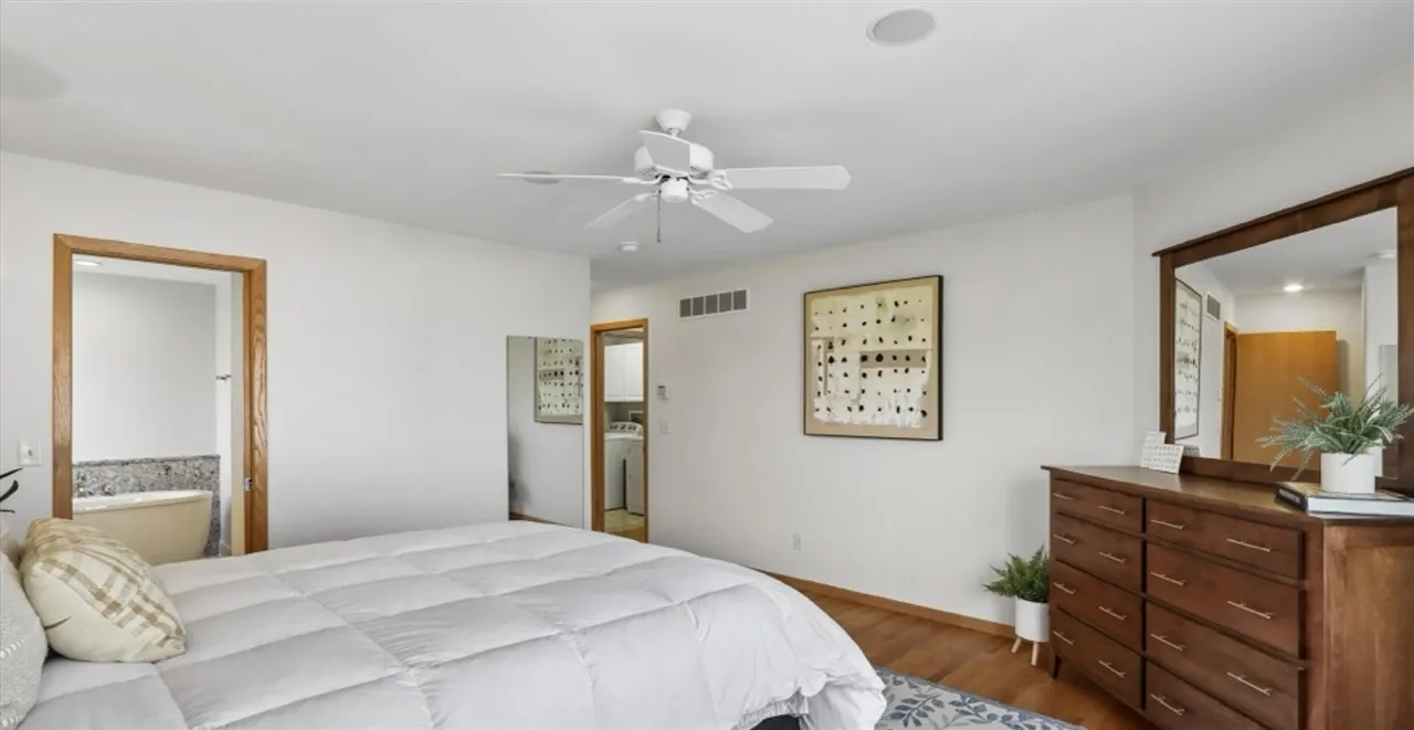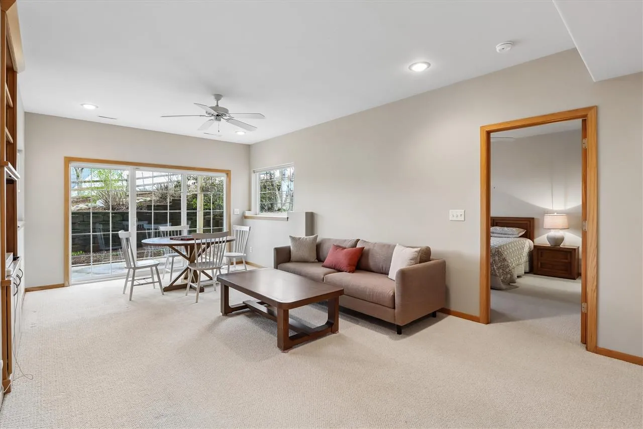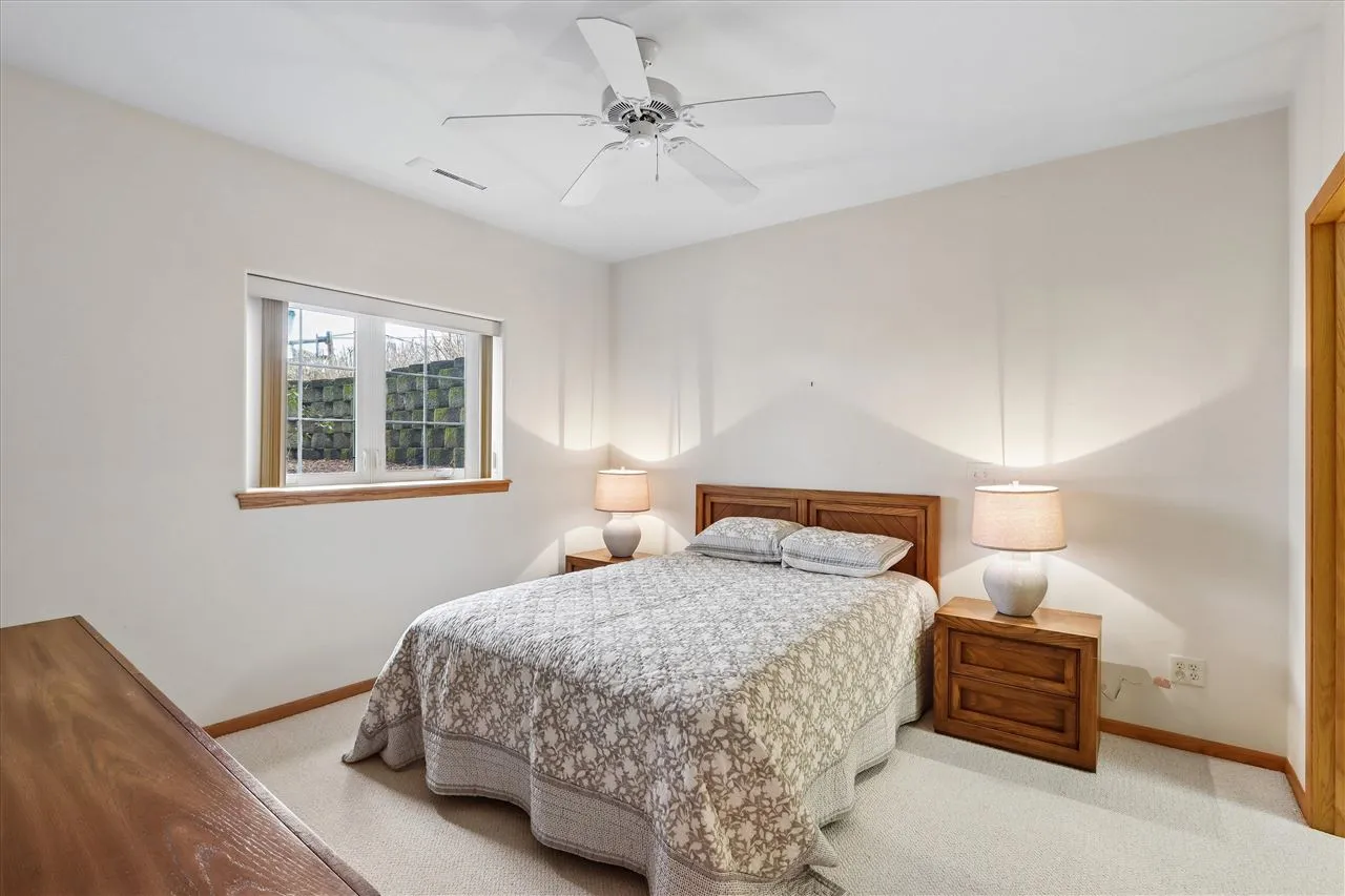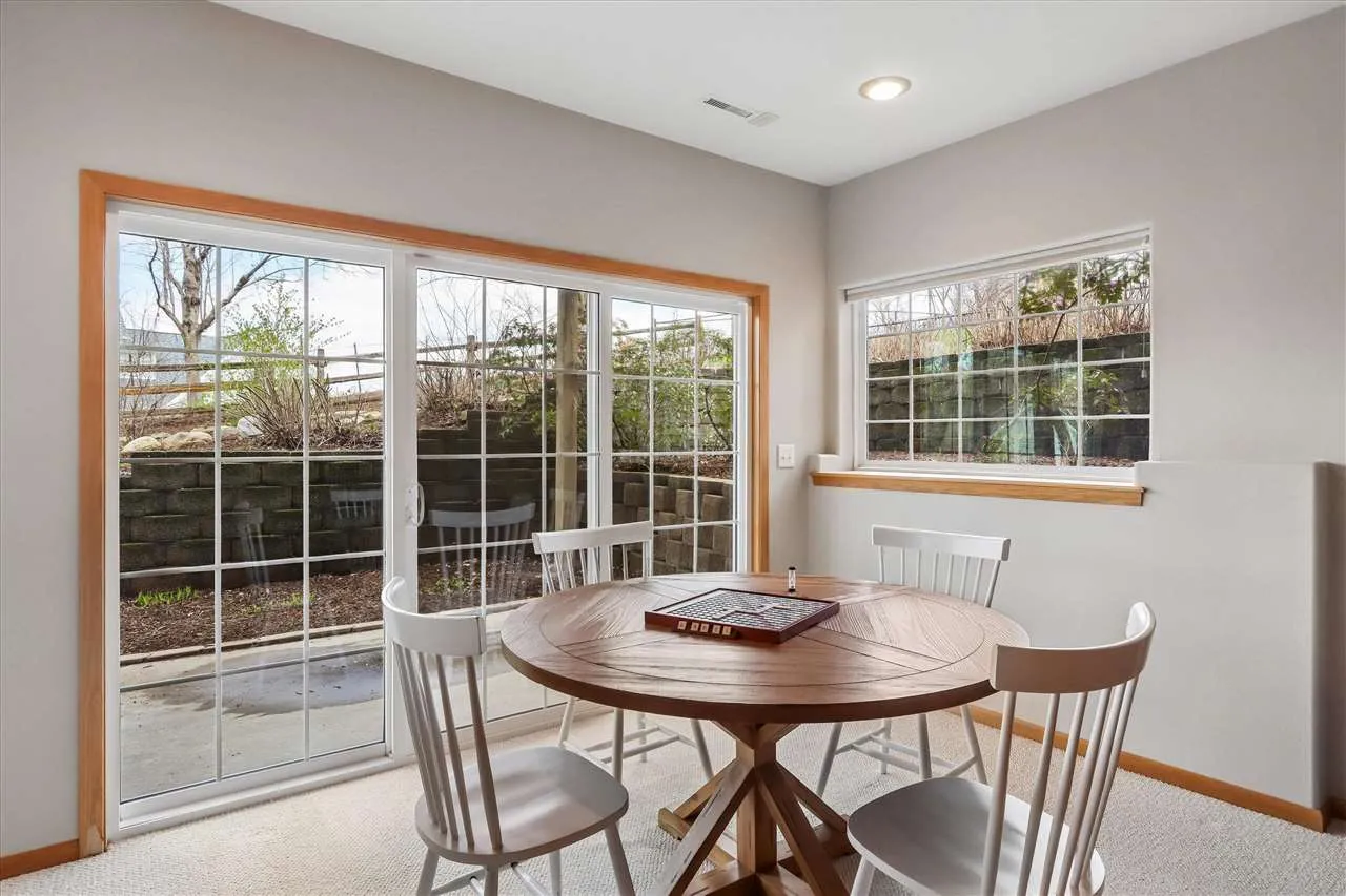 Welcome to this well-maintained home tucked on a quiet cul-de-sac amid mature trees and beautifully established landscaping. It offers a wonderful sense of privacy while remaining close to the conveniences of Coralville, North Liberty, and Iowa City. The main level features a gracious living room with hardwood floors, built-ins, and a gas fireplace, with an open connection to the foyer and dining area. The kitchen is positioned with large passthroughs to the living room, creating both connection and definition between spaces. The dining area opens to a 3-season cedar porch with an included heating unit and abundant windows, while a nicely sized deck just beyond overlooks the lush backyard. The main level also includes a spacious primary suite with an updated bath, a second bedroom currently presenting as a home office with a built-in desk and bookshelves, and a convenient half bath. The finished lower level includes a family room with walkout access to the patio, two bedrooms, one with an ensuite bath and the other across the hall from a third full bath. A garden/workshop room with a utility sink and exterior door adds flexibility. The roof was new in March 2023, and the home enjoys the peace of mind of a whole-home Generac generator. Outside, a dry creek and flagstone path complete the park-like setting.