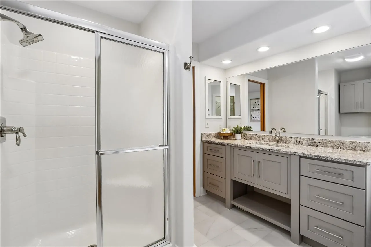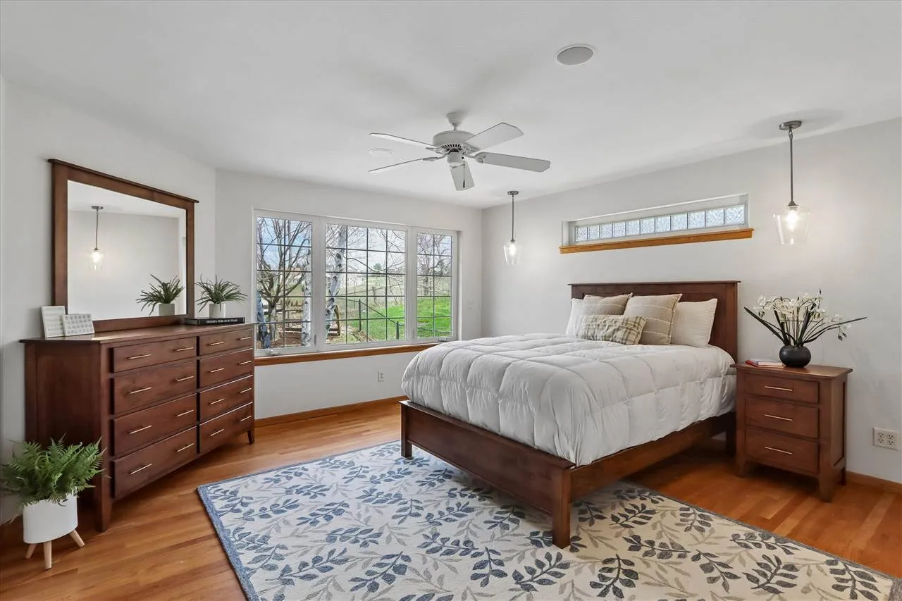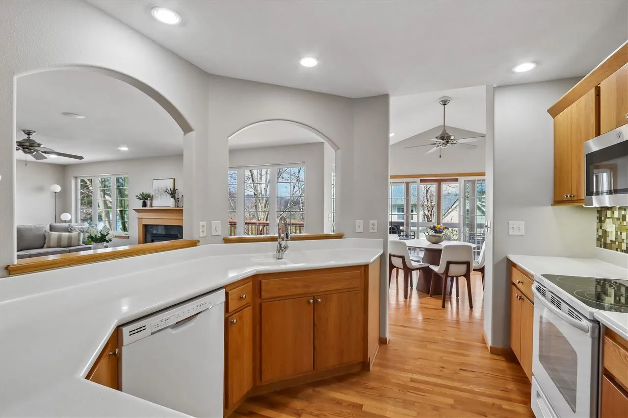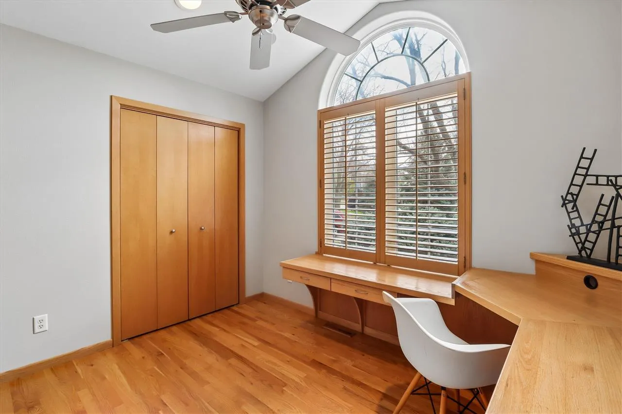 Welcome to this well-maintained home tucked on a quiet cul-de-sac amid mature trees and beautifully established landscaping. It offers a wonderful sense of privacy while remaining close to the conveniences of Coralville, North Liberty, and Iowa City. The main level features a gracious living room with hardwood floors, built-ins, and a gas fireplace, with an open connection to the foyer and dining area. The kitchen is positioned with large passthroughs to the living room, creating both connection and definition between spaces. The dining area opens to a 3-season cedar porch with an included heating unit and abundant windows, while a nicely sized deck just beyond overlooks the lush backyard. The main level also includes a spacious primary suite with an updated bath, a second bedroom currently presenting as a home office with a built-in desk and bookshelves, and a convenient half bath. The finished lower level includes a family room with walkout access to the patio, two bedrooms, one with an ensuite bath and the other across the hall from a third full bath. A garden/workshop room with a utility sink and exterior door adds flexibility. The roof was new in March 2023, and the home enjoys the peace of mind of a whole-home Generac generator. Outside, a dry creek and flagstone path complete the park-like setting.